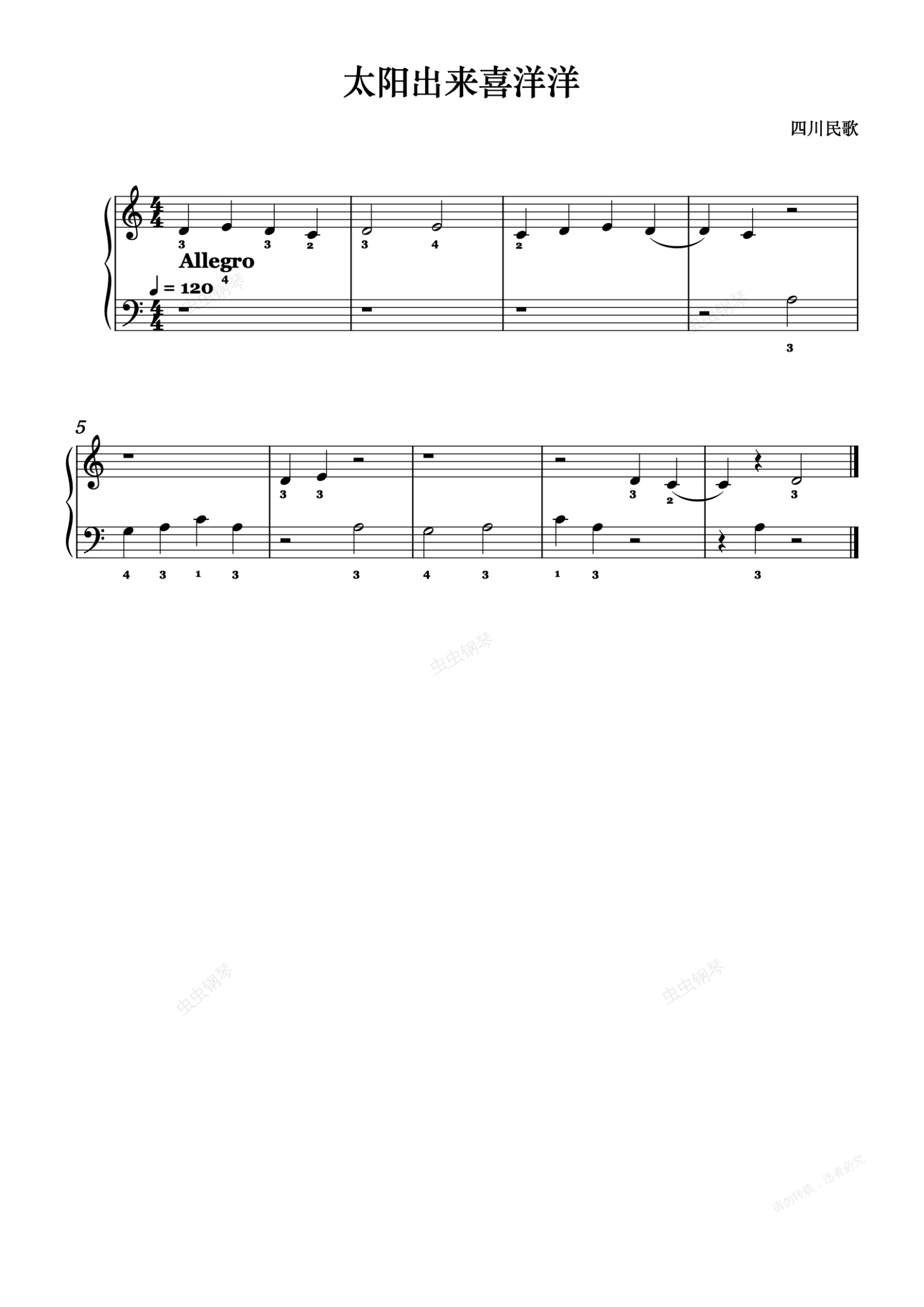 钢琴谱:83.太阳出来喜洋洋
