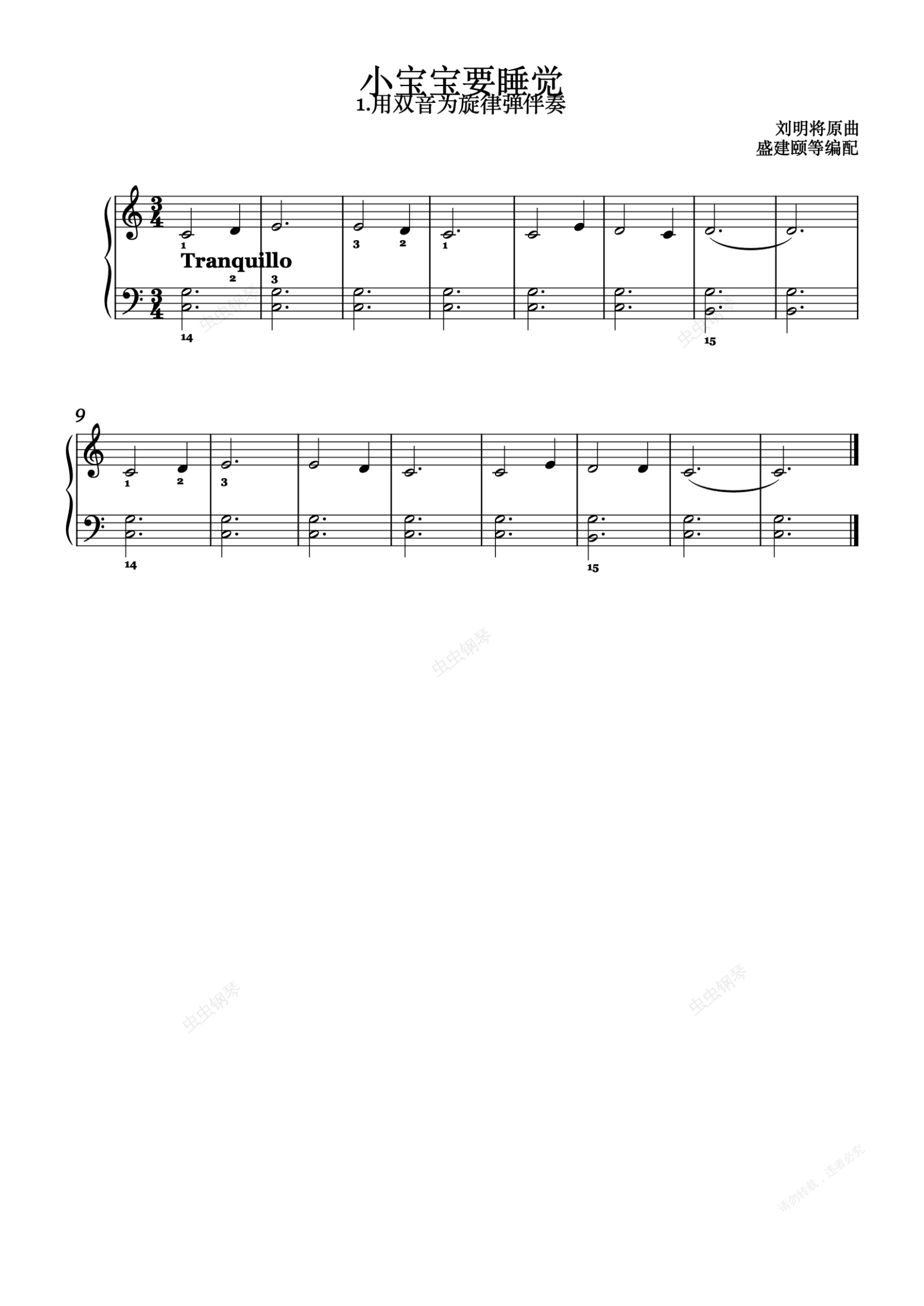 钢琴谱:95.小宝宝要睡觉(用双音为旋律弹伴奏)
