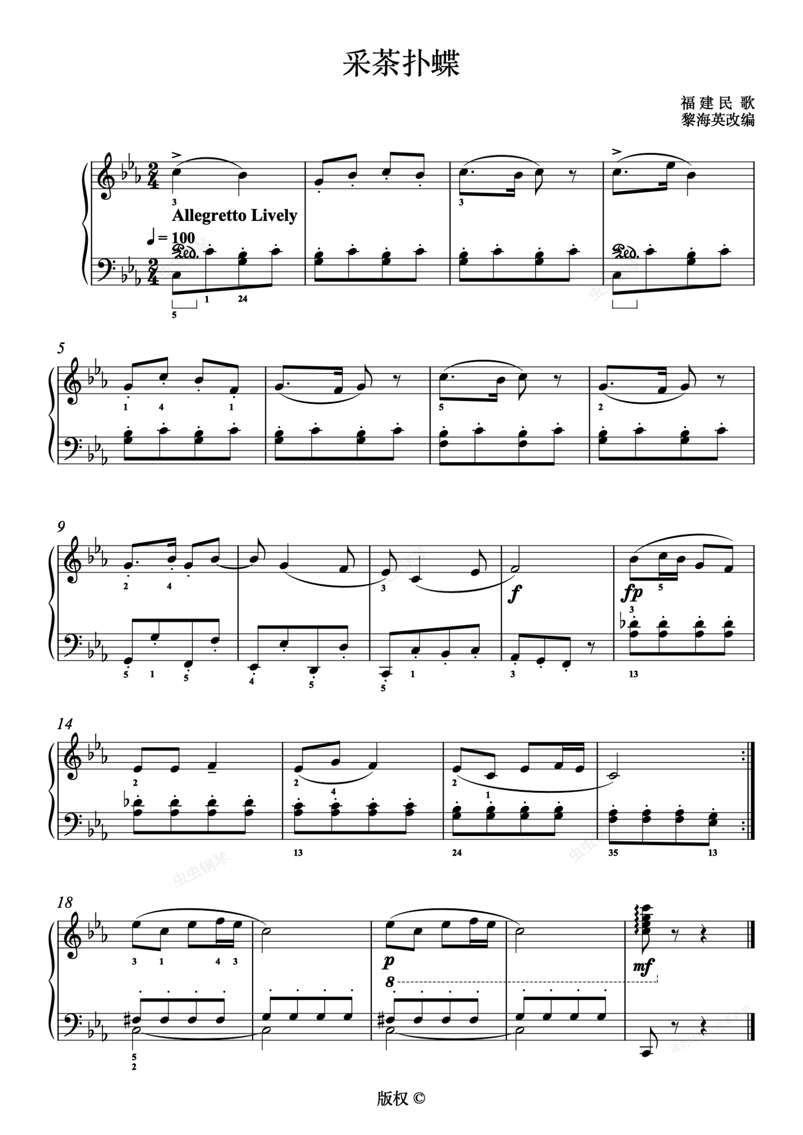 钢琴谱:10.采茶扑蝶