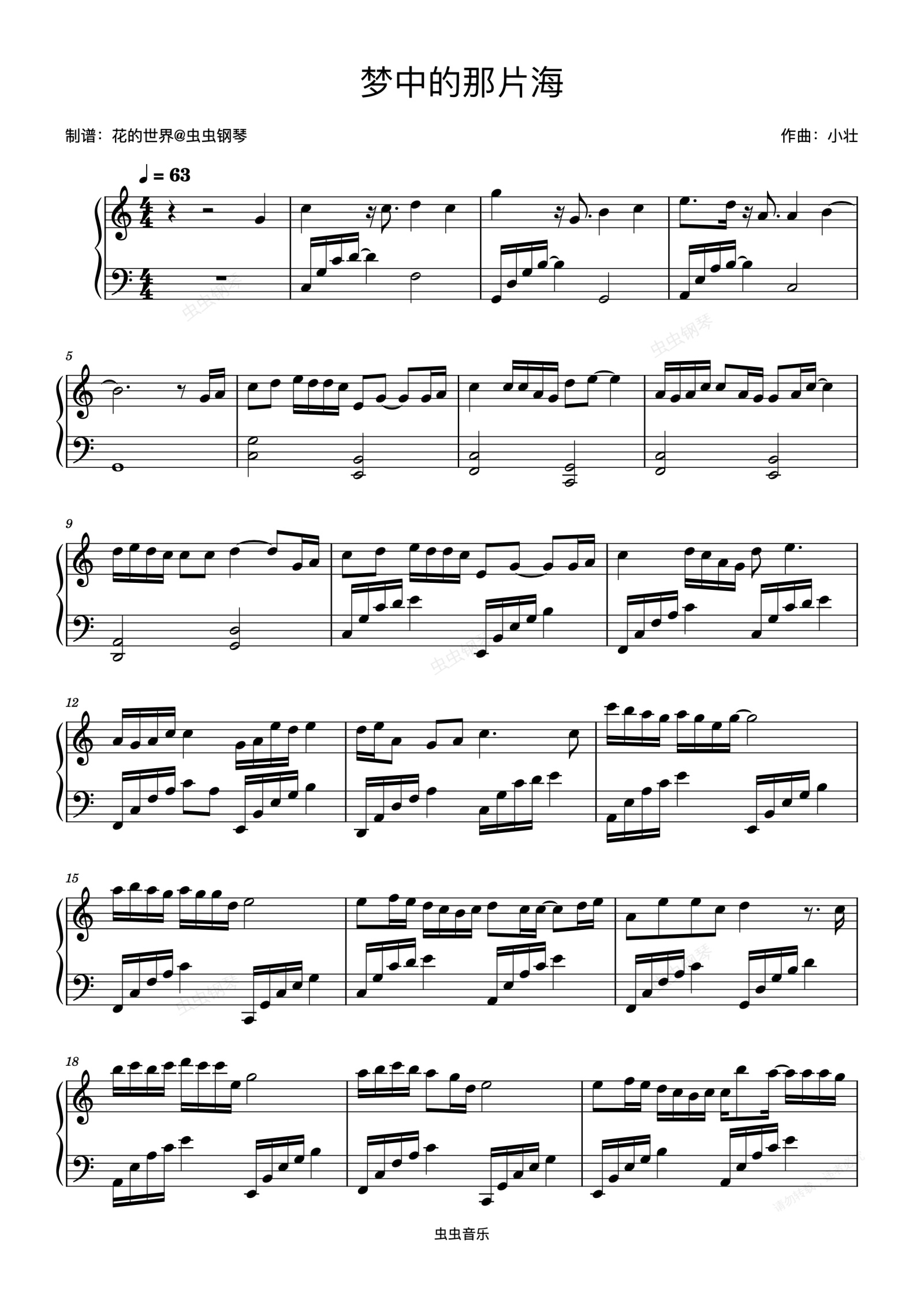 钢琴谱:梦中的那片海 C调简易版 胡夏