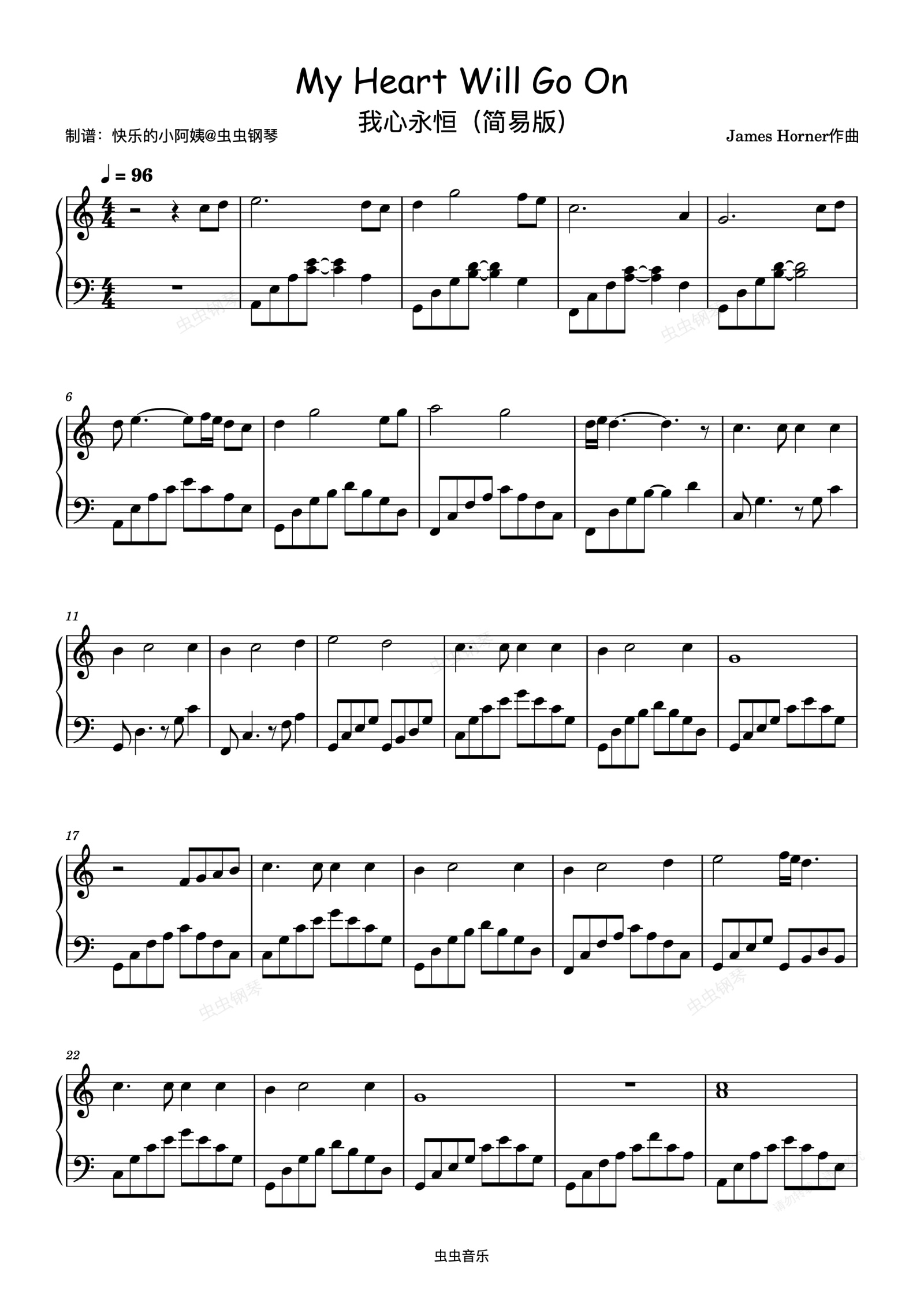 钢琴谱:My Heart Will Go On(我心永恒)简易版 - Andrea Bocelli/Celine Dion