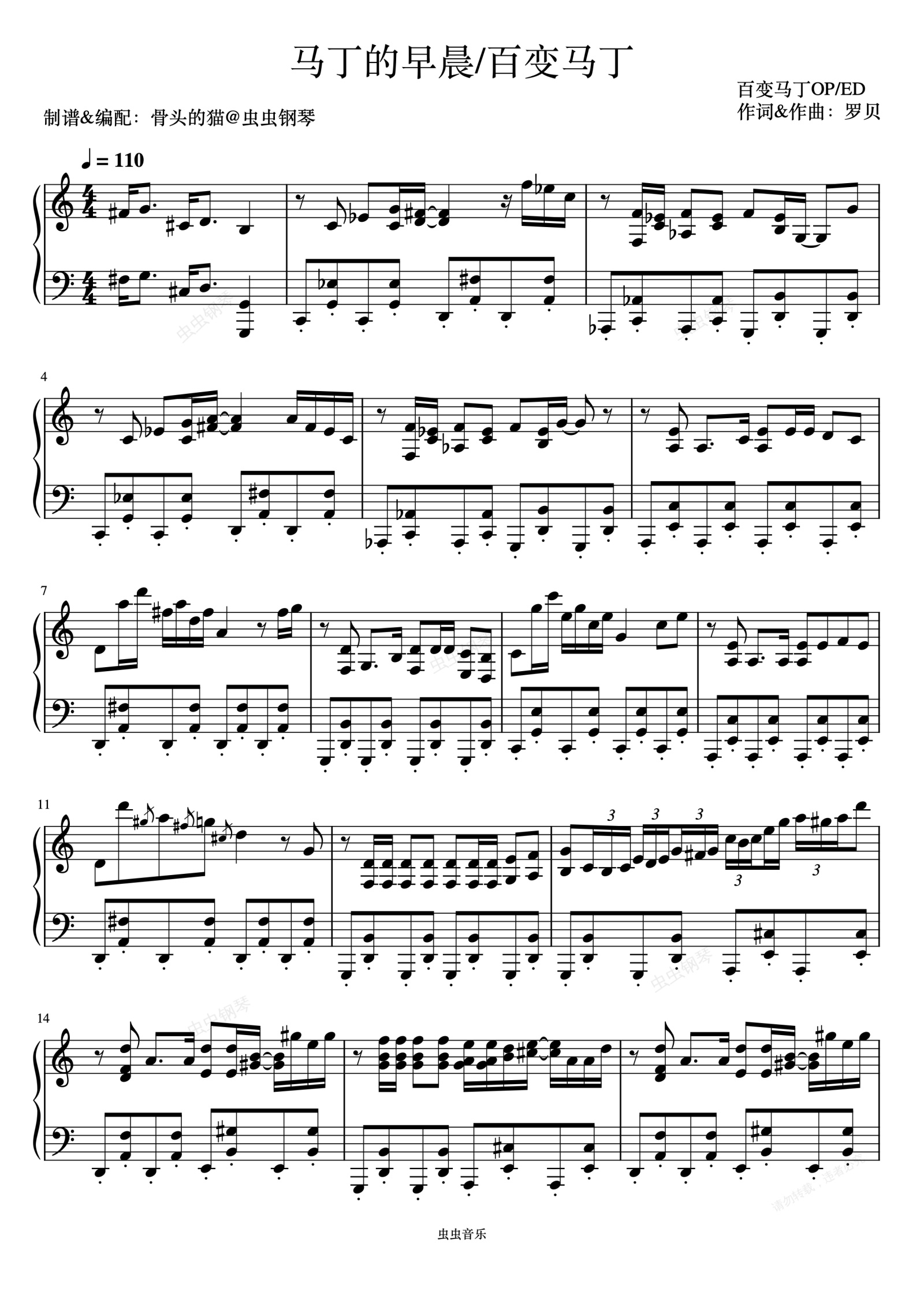 钢琴谱:马丁的早晨/百变马丁OP/ED