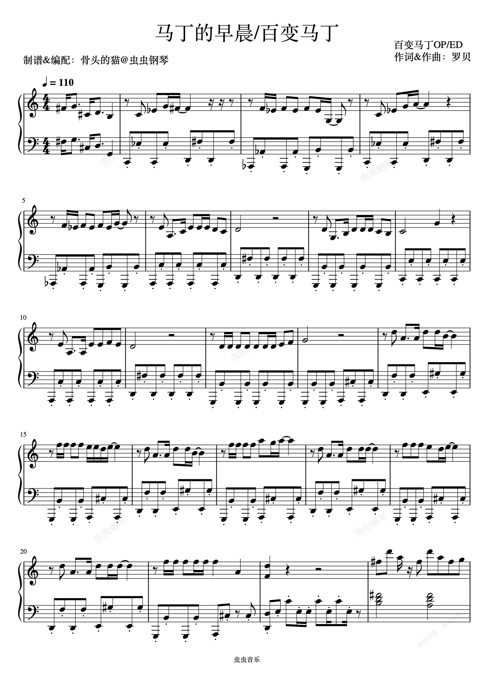 钢琴谱:马丁的早晨/百变马丁OP/ED(简易版)