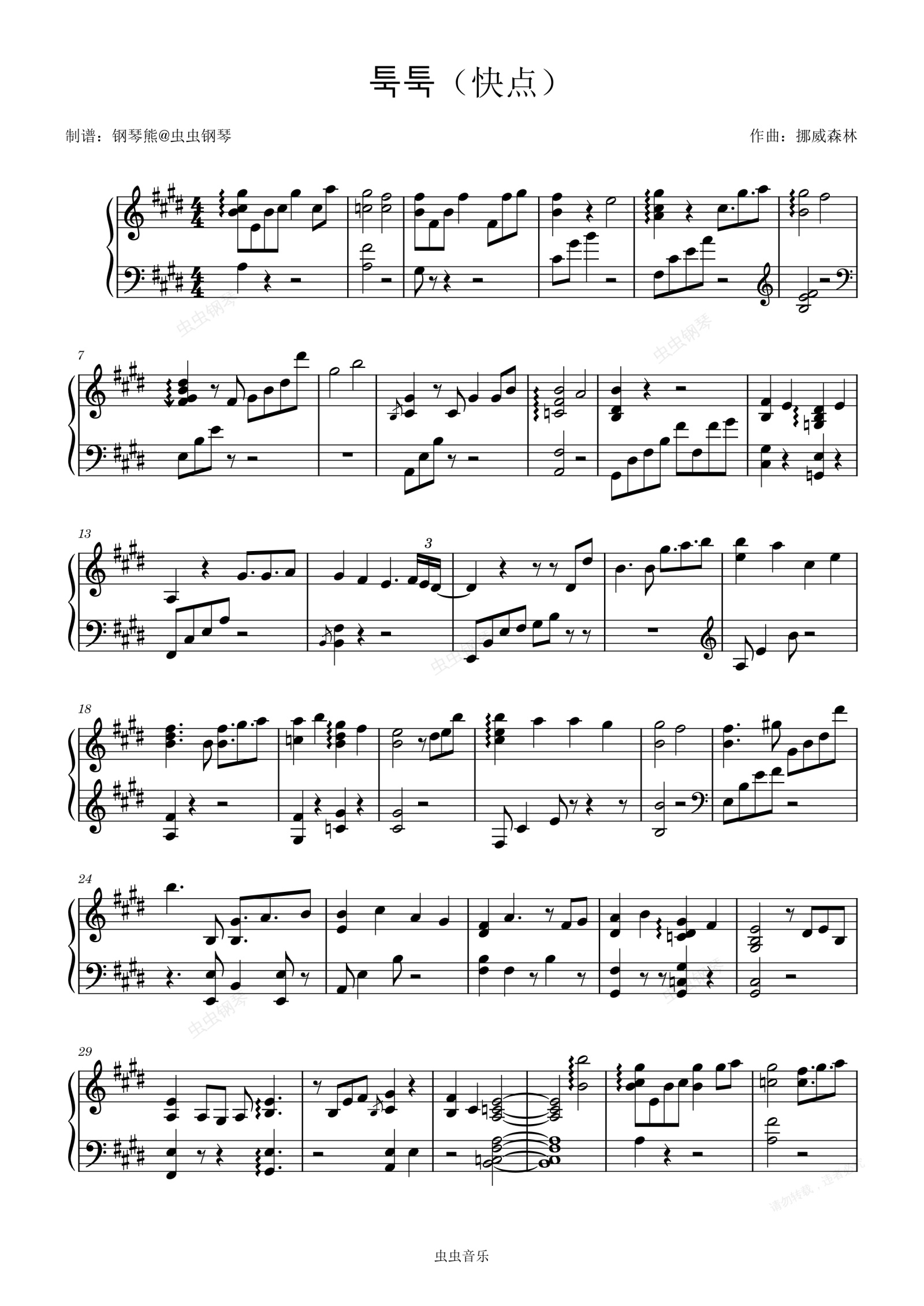 钢琴谱:툭툭(快点)挪威森林 钢琴唯美极致还原版