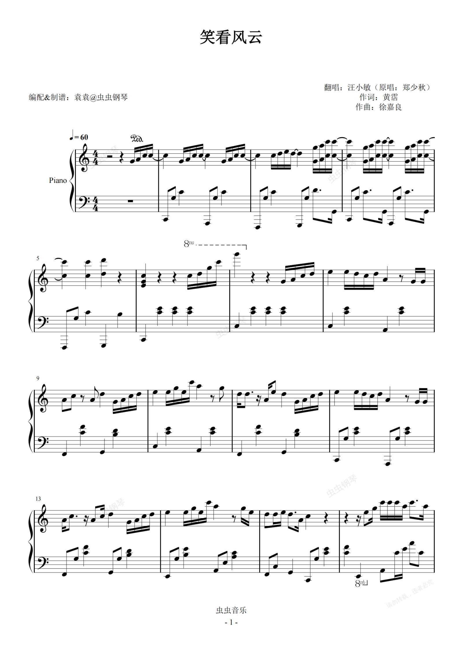 钢琴谱:笑看风云 汪小敏版 简易编配版 C调