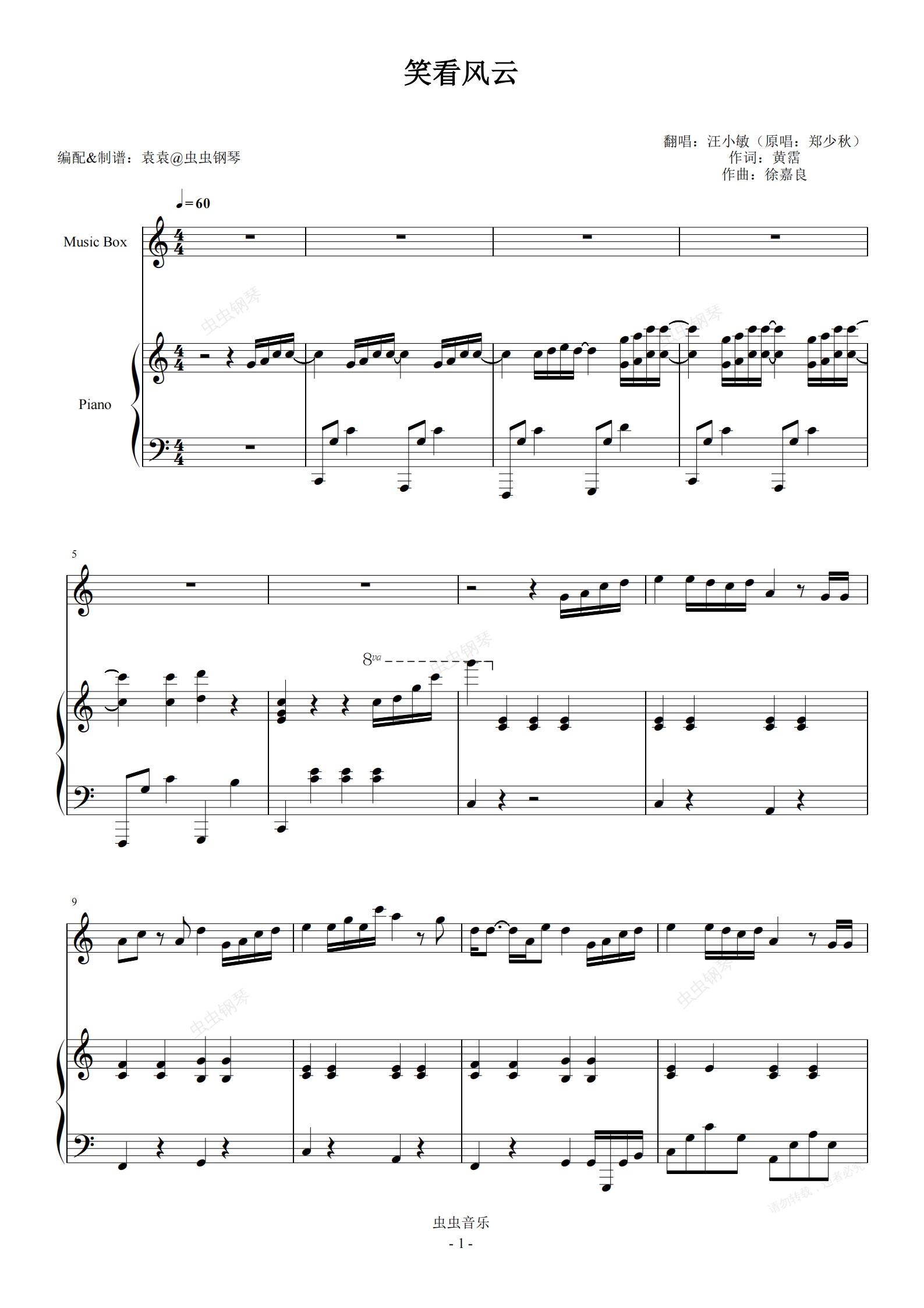 钢琴谱:笑看风云 弹唱版 女声 C调