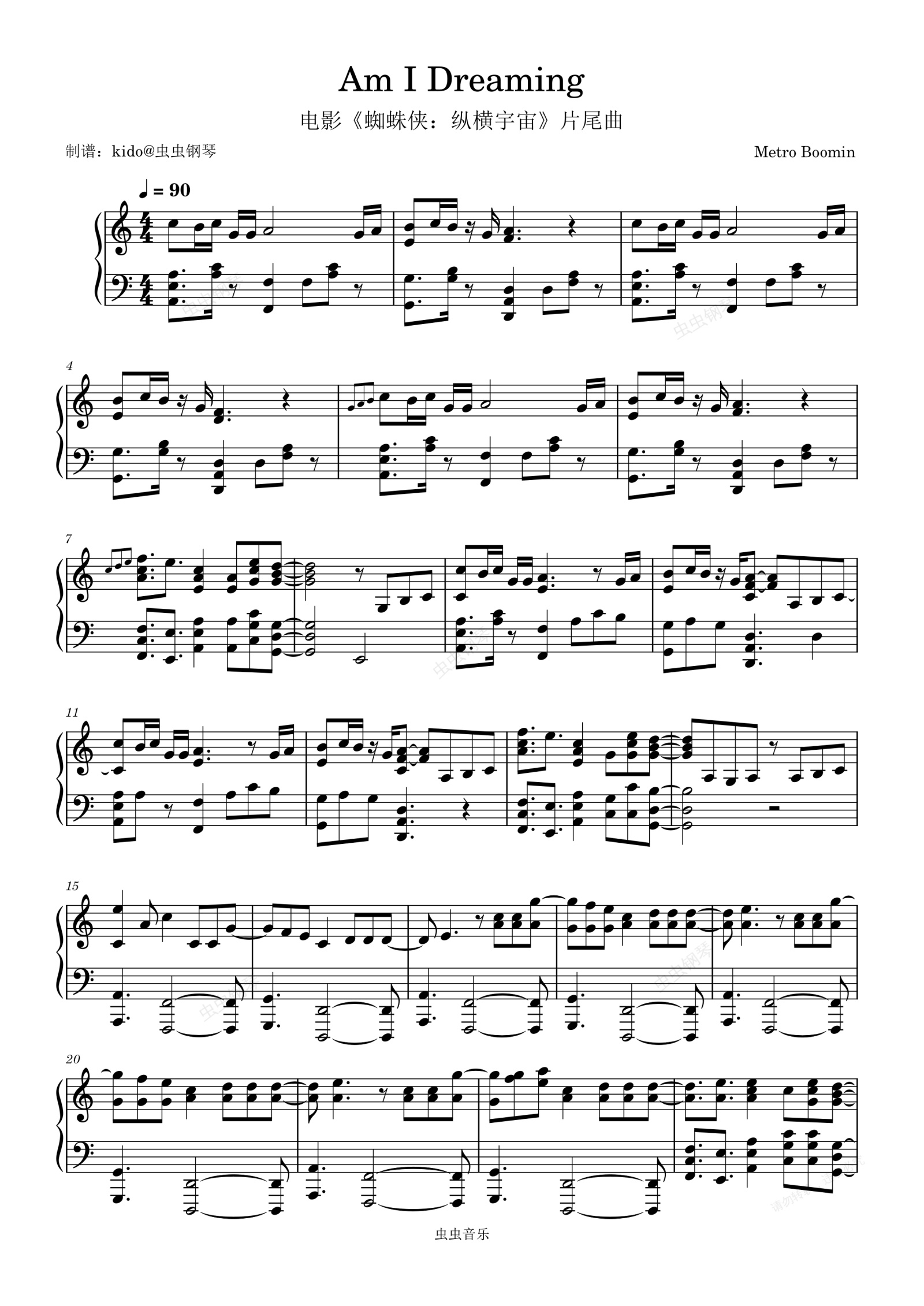 钢琴谱:Am I Dreaming 电影《蜘蛛侠:纵横宇宙》片尾曲