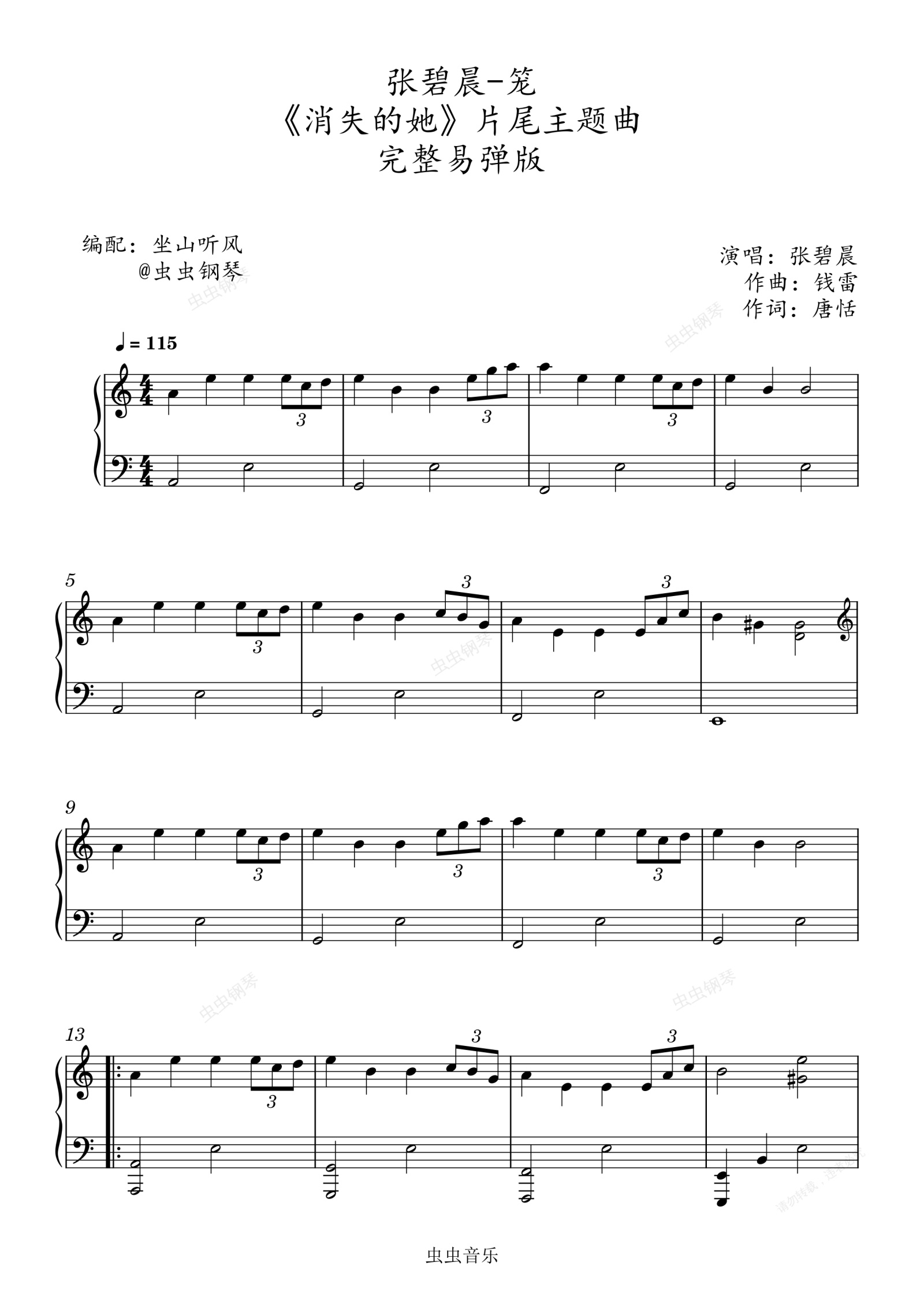 钢琴谱:张碧晨《笼》——【消失的她】片尾主题曲