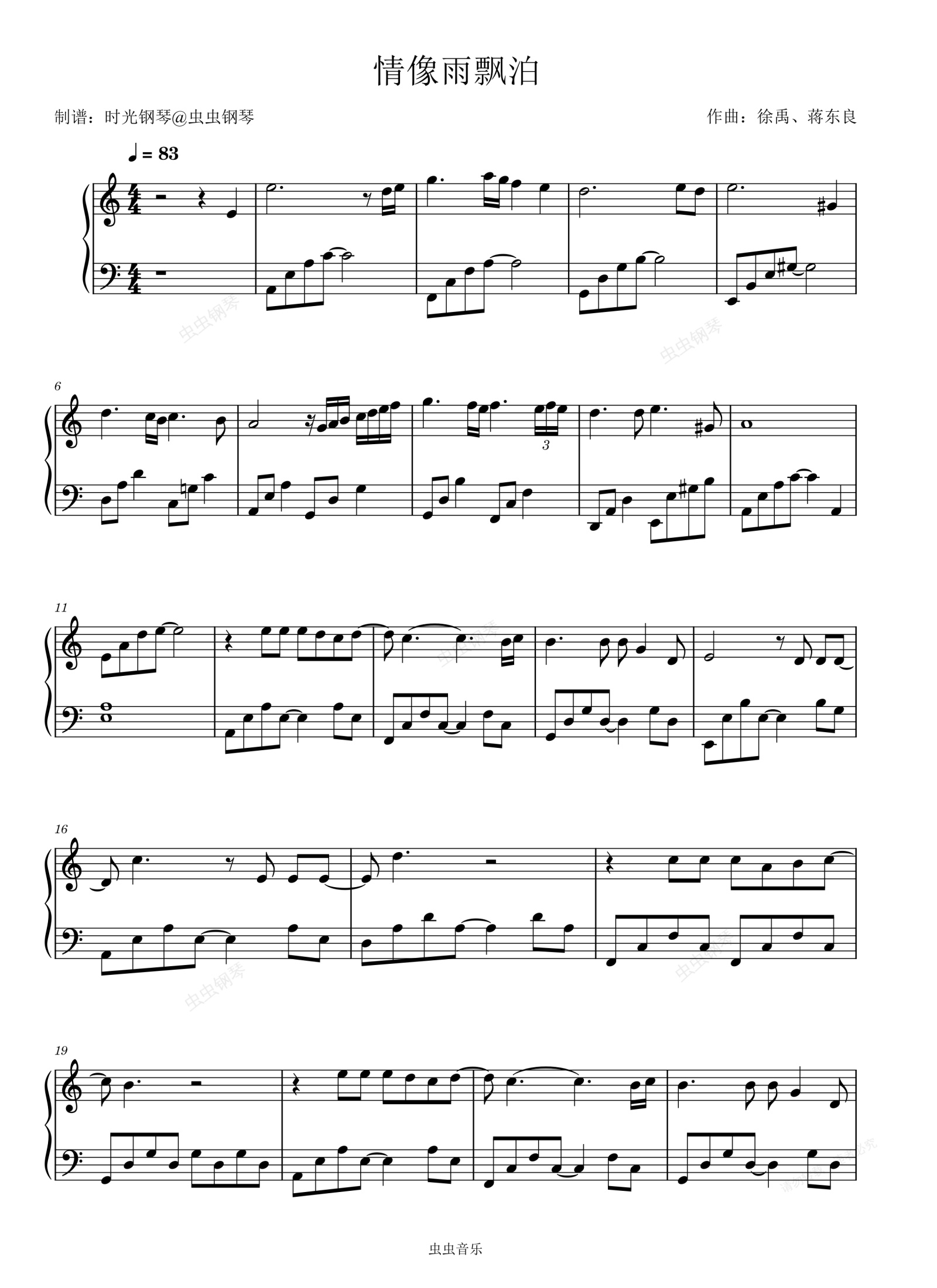 钢琴谱:情像雨飘泊 黎明 简单好听