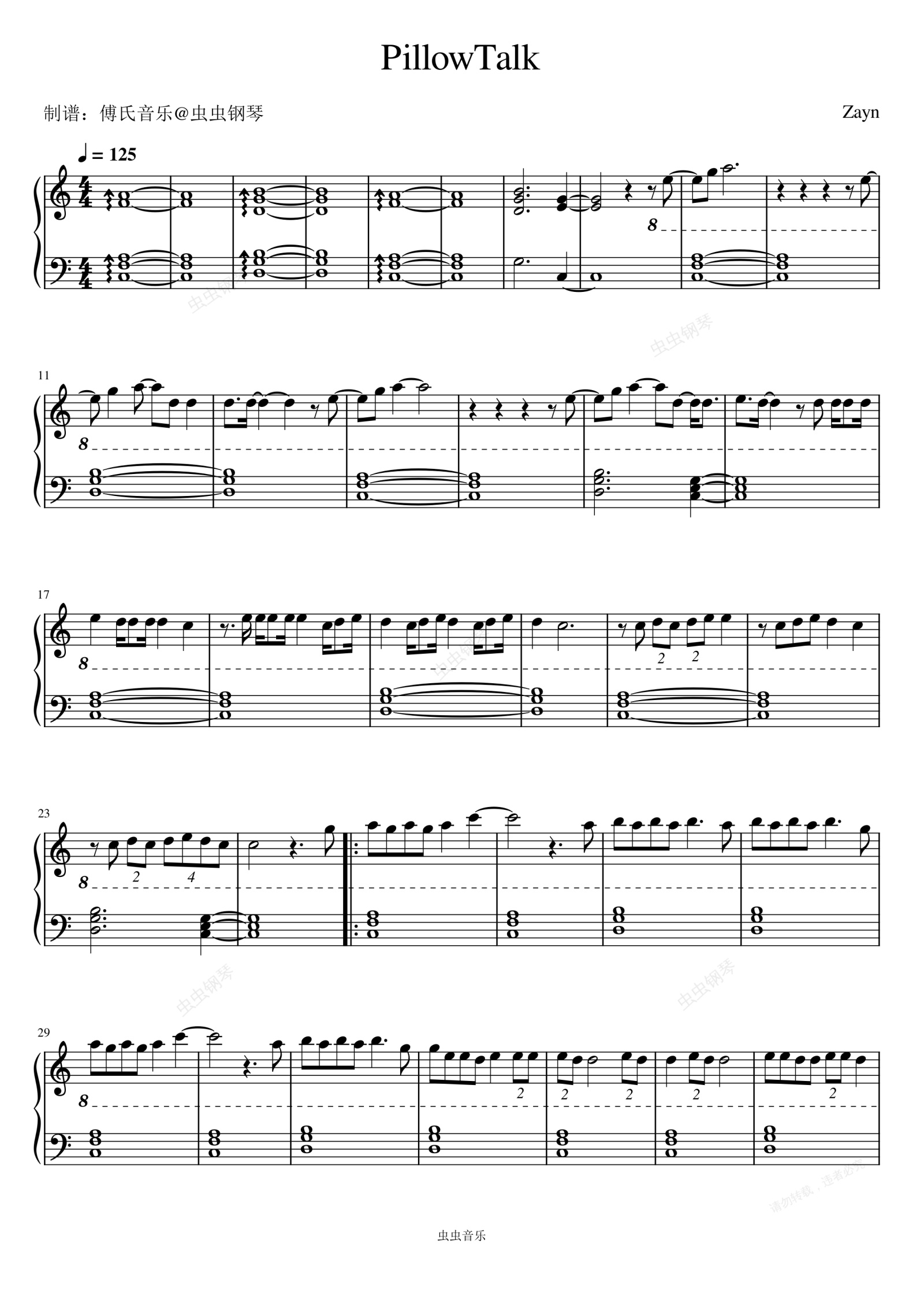 钢琴谱:PILLOWTALK - ZAYN (泽恩)