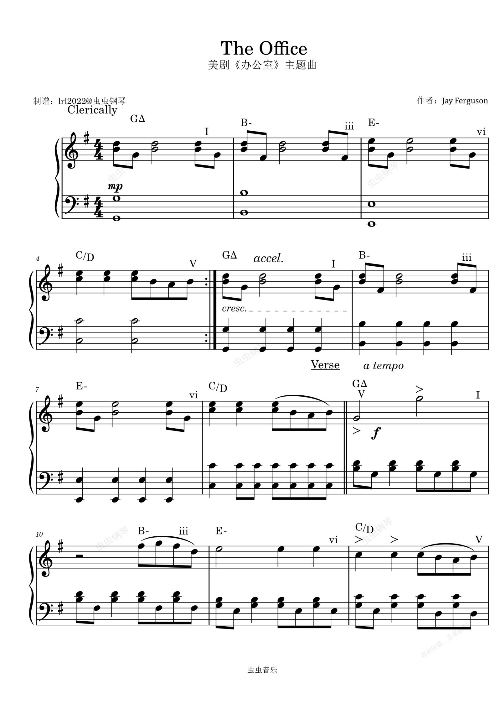 钢琴谱:The Office - Theme - 美剧《办公室》主题曲 - 钢琴独奏