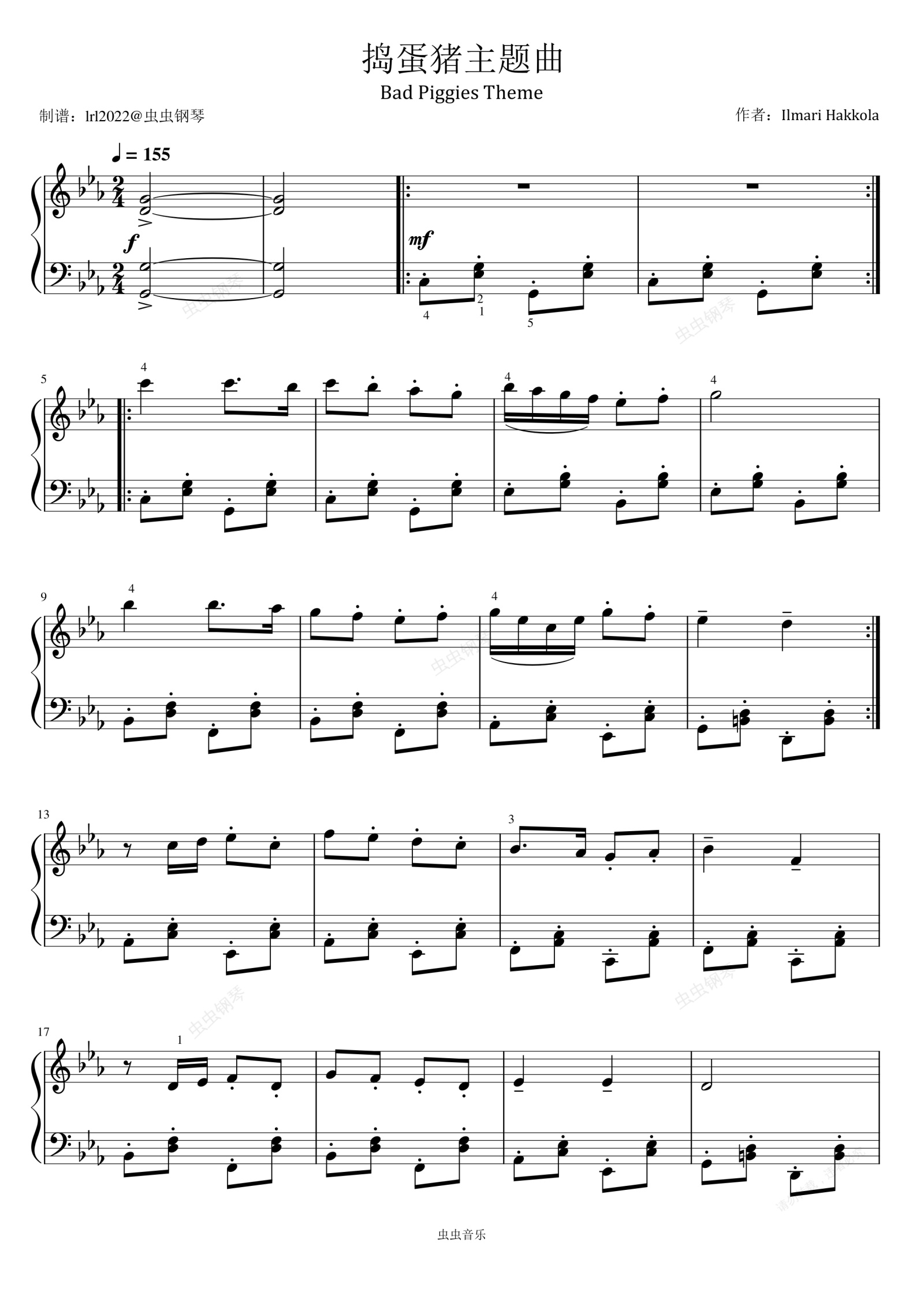 钢琴谱:Bad Piggies Theme - 捣蛋猪主题曲 - 钢琴独奏