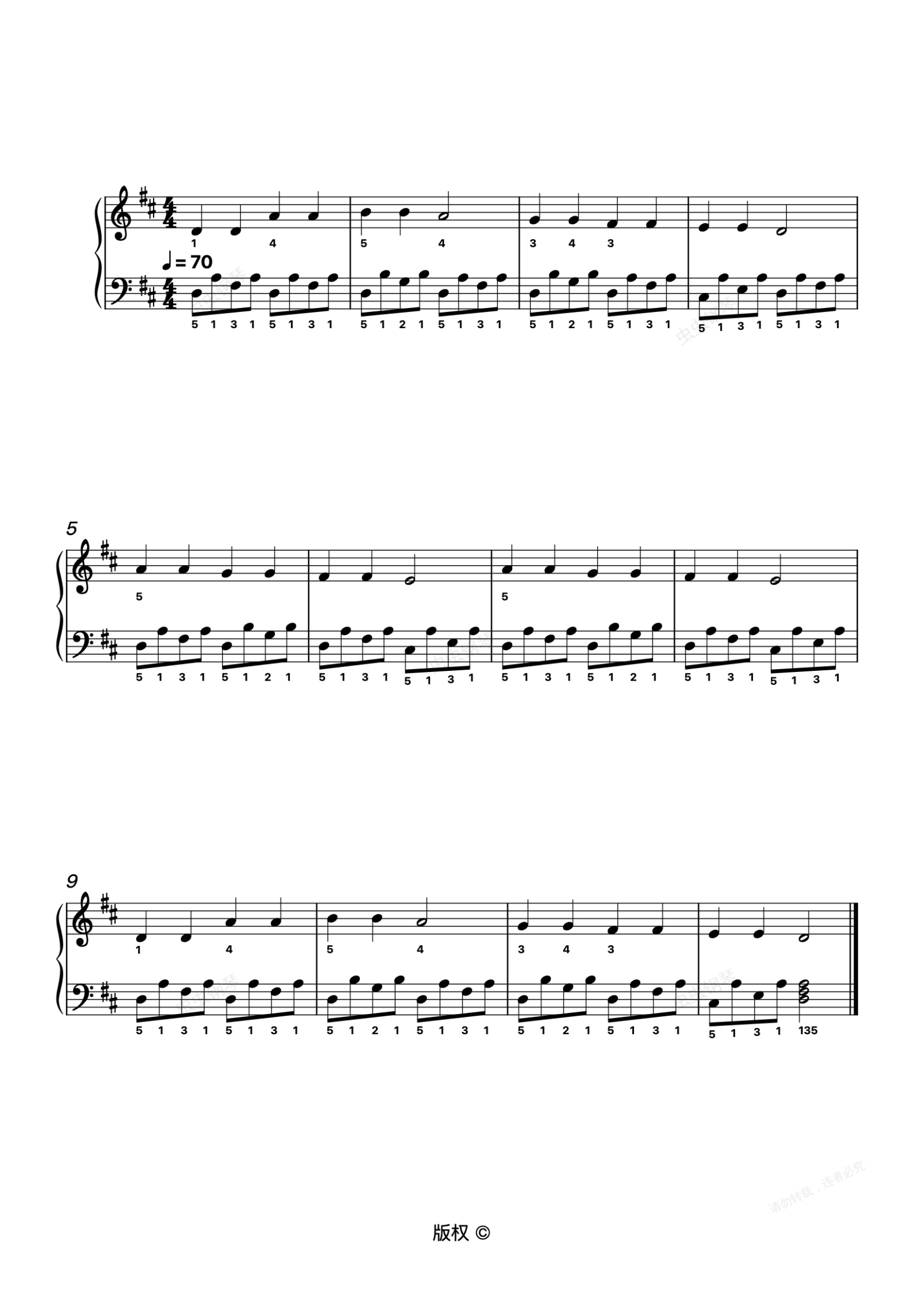 钢琴谱:一闪一闪小星星(速度70)预览(无标题)(208)