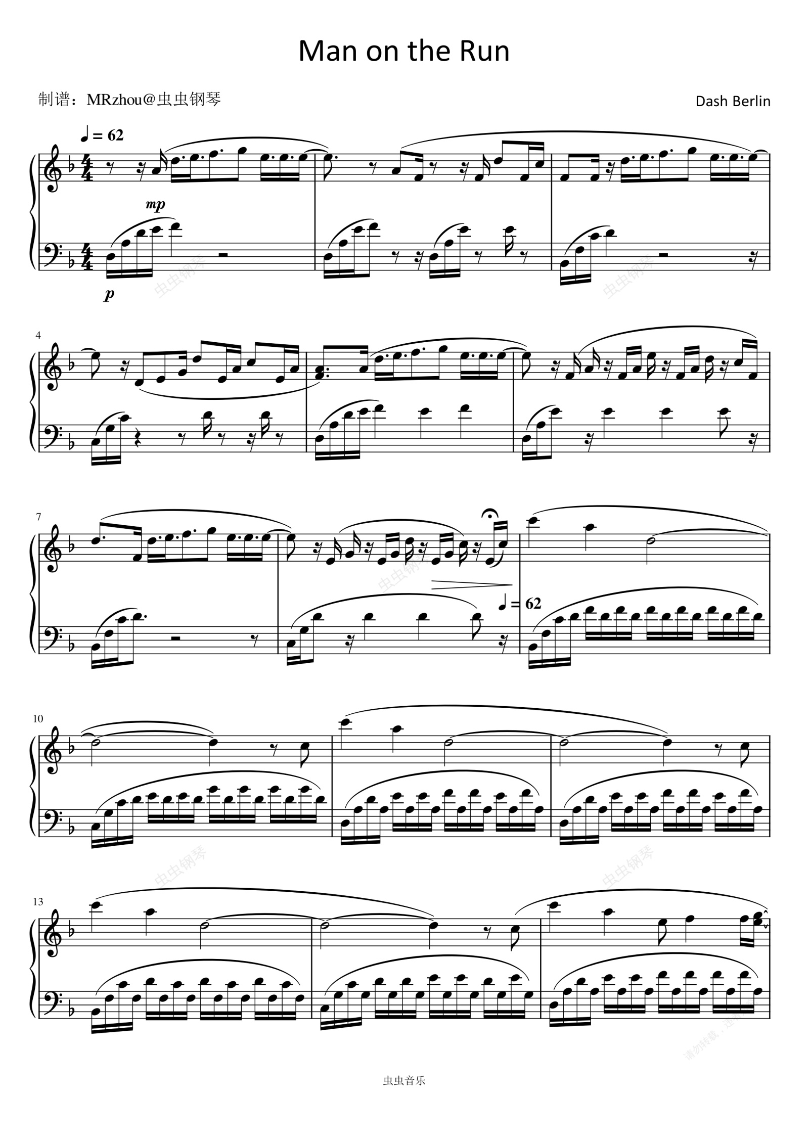 钢琴谱:Man On the Run (Radio Edit) - Dash Berlin/Cerf, Mitiska & Jaren