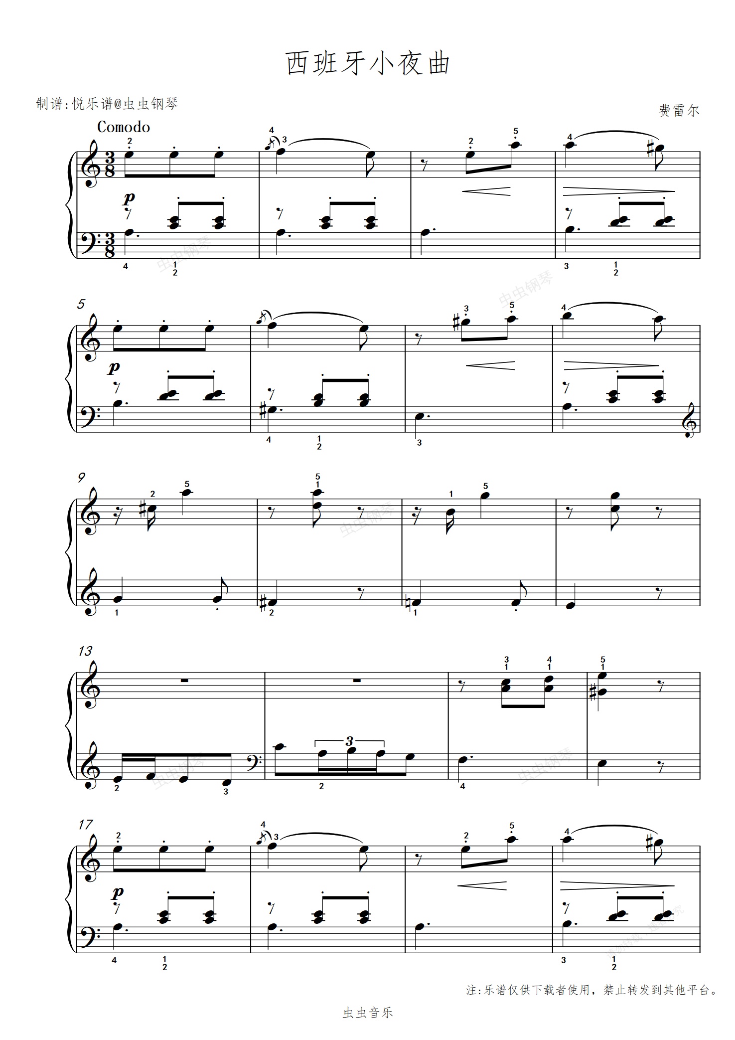 钢琴谱:西班牙小夜曲【抒情-欢快】