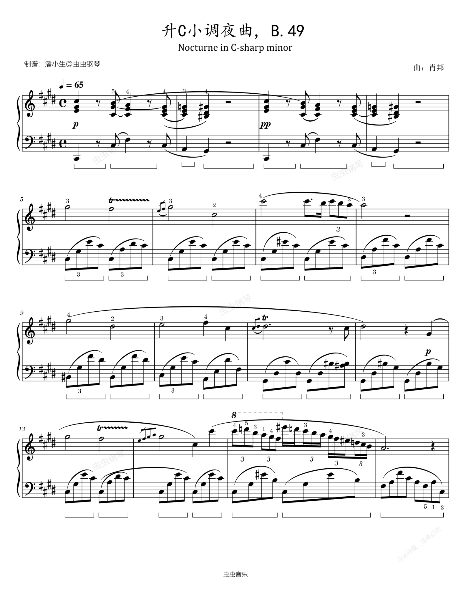 钢琴谱:肖邦 升C小调夜曲, B.49 原版带指法 Nocturne in C sharp Minor,Chopin