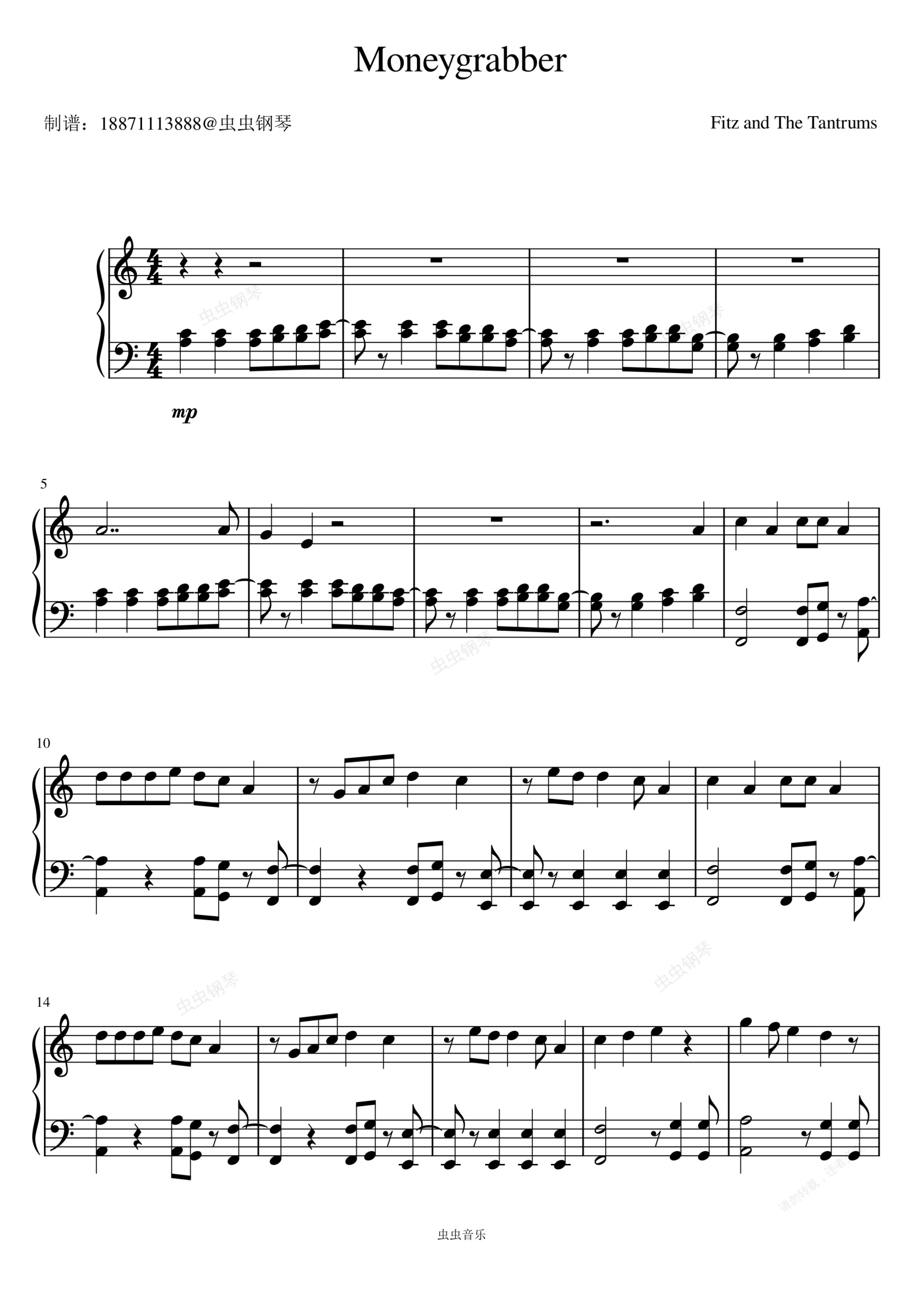 钢琴谱:Moneygrabber - Fitz and The Tantrums
