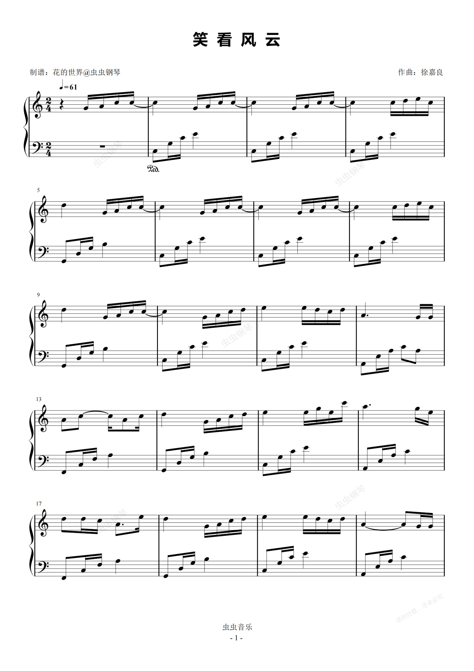 钢琴谱:笑看风云 C调简易版 郑少秋 流行经典