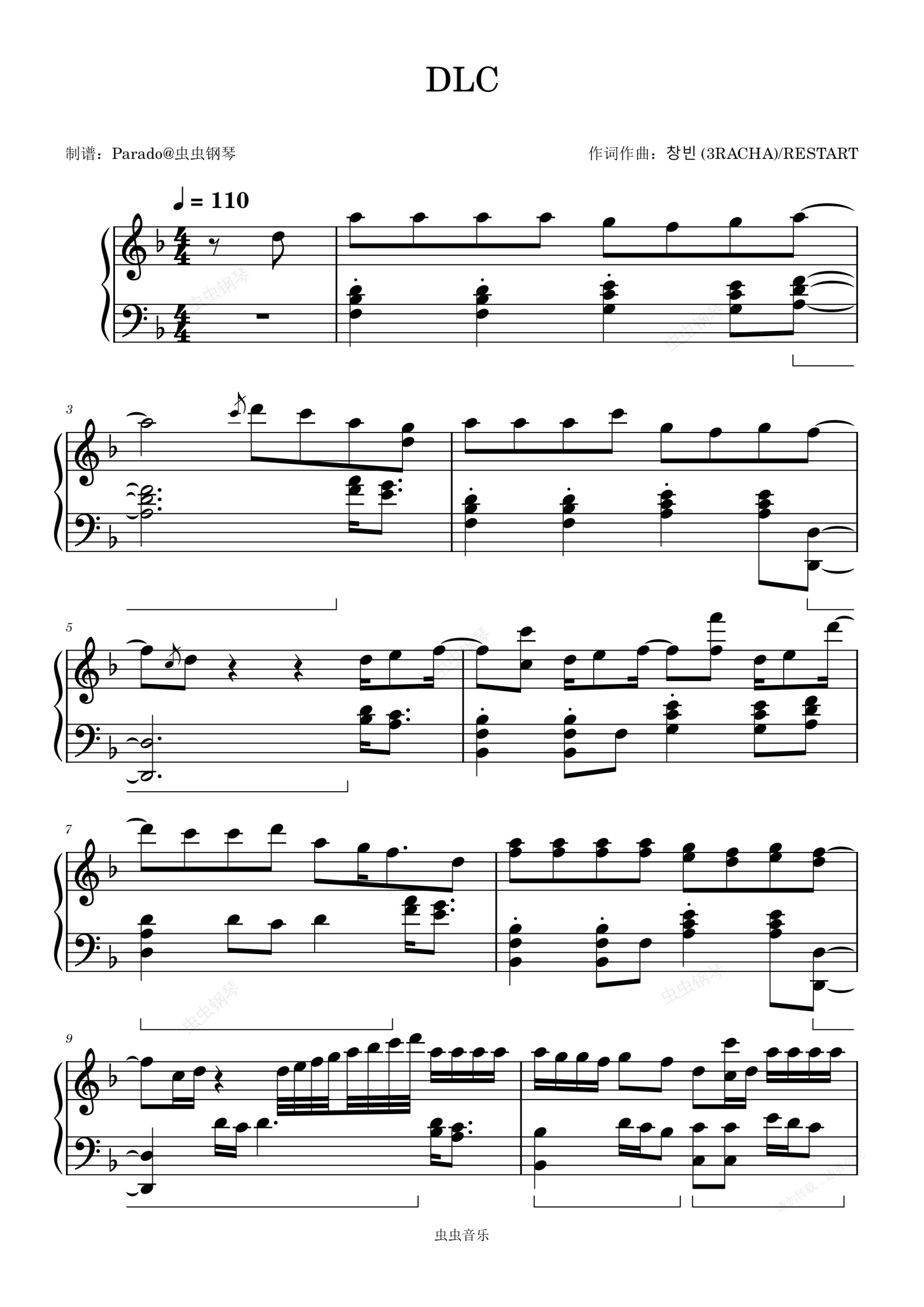 钢琴谱:【火爆新曲】DLC[F调] - Stray Kids