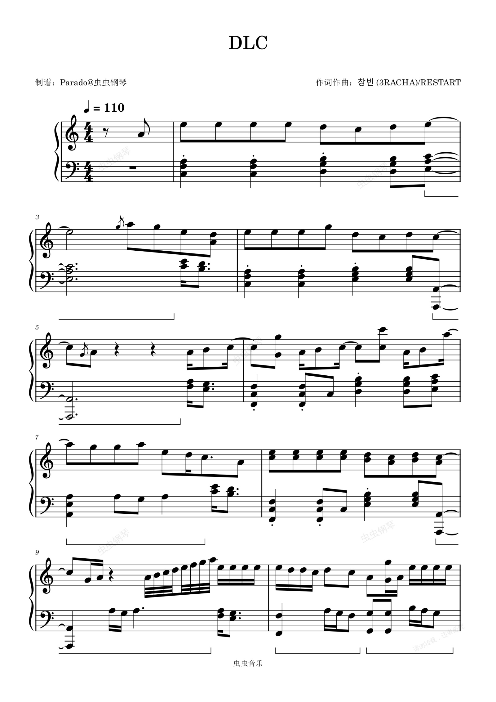 钢琴谱:【火爆新曲】DLC[C调] - Stray Kids