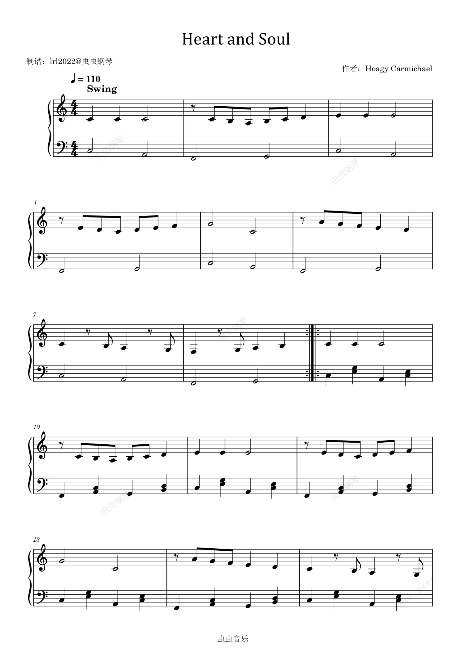 钢琴谱:Heart and Soul - 钢琴独奏简易版- Hoagy Carmichael