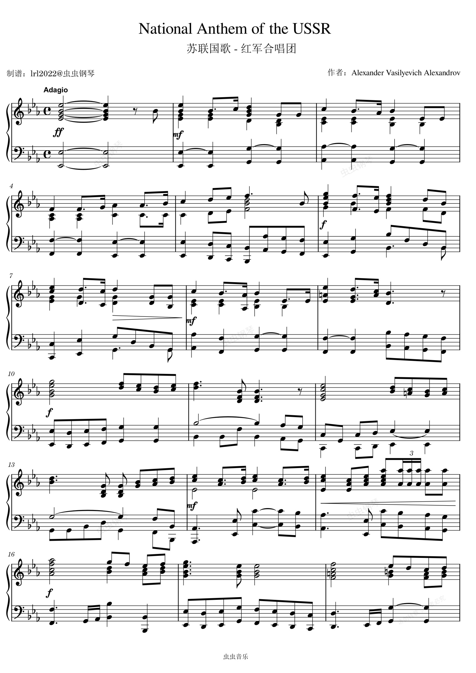 钢琴谱:苏联国歌 - National Anthem of the USSR - 钢琴独奏