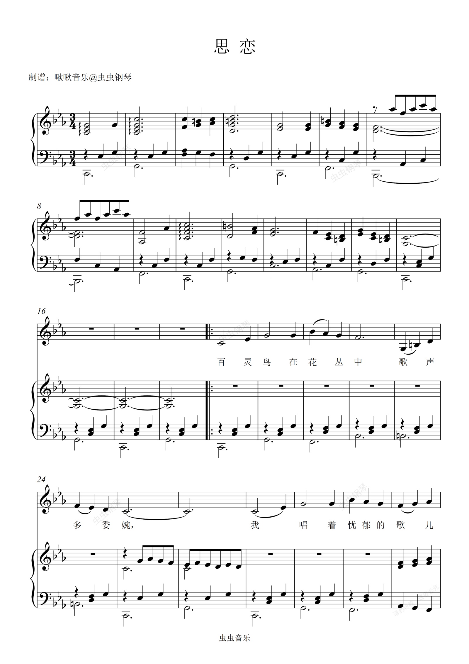 钢琴谱:思恋 艾克拜尔吾·拉木 维吾尔族民歌 钢琴弹唱伴奏谱