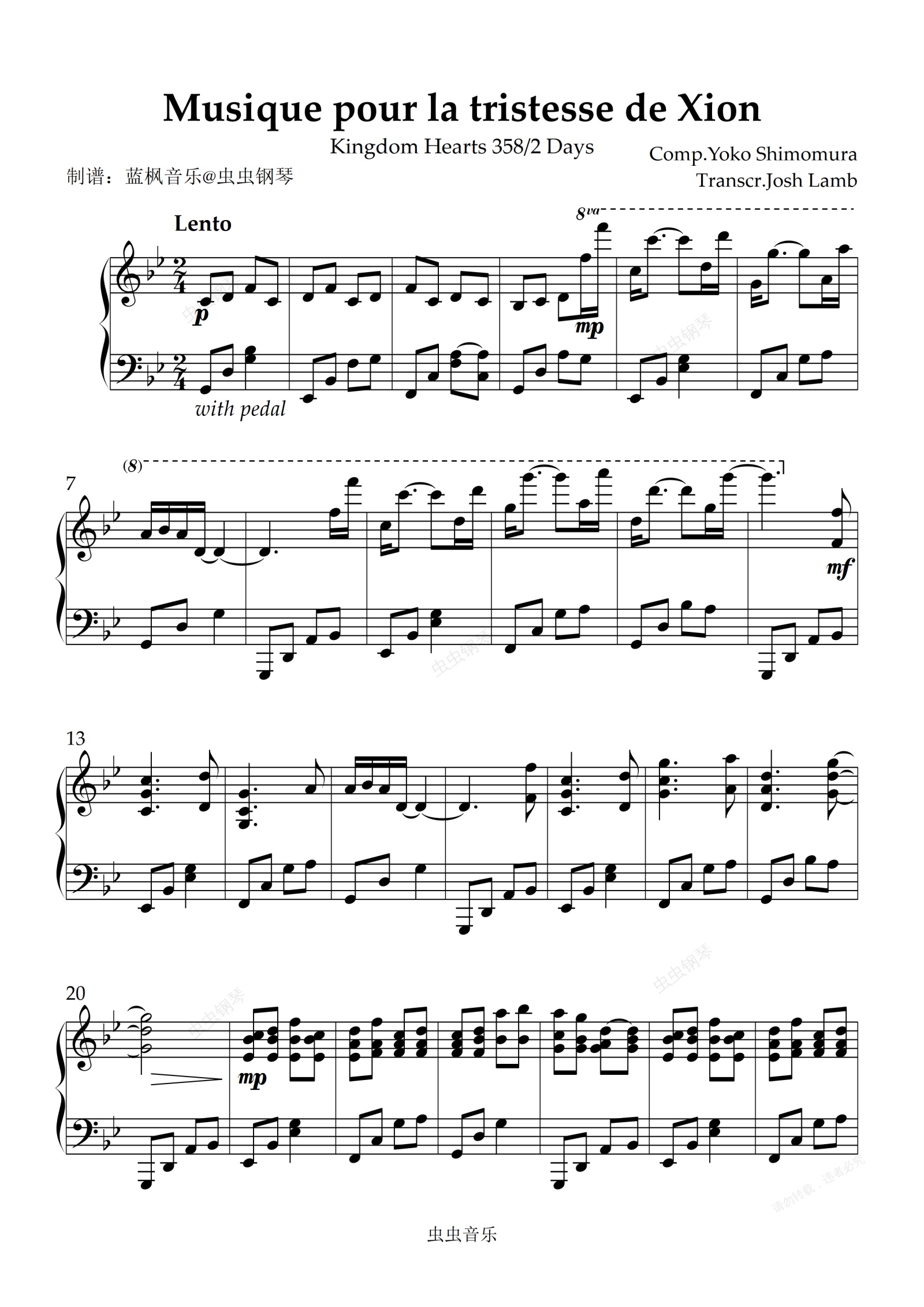 钢琴谱:【王国之心记忆旋律】Musique pour la Tristesse de Xion——献给席恩的哀歌