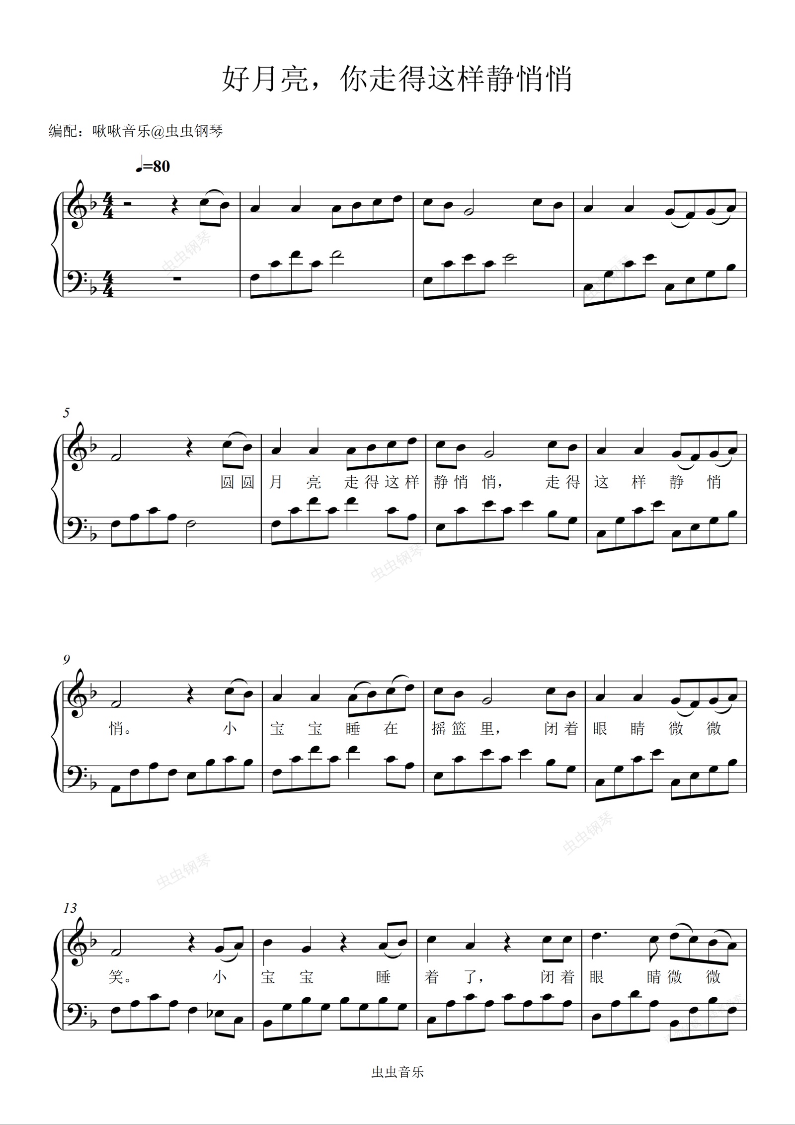 钢琴谱:好月亮,你走得这样静悄悄 钢琴独奏谱