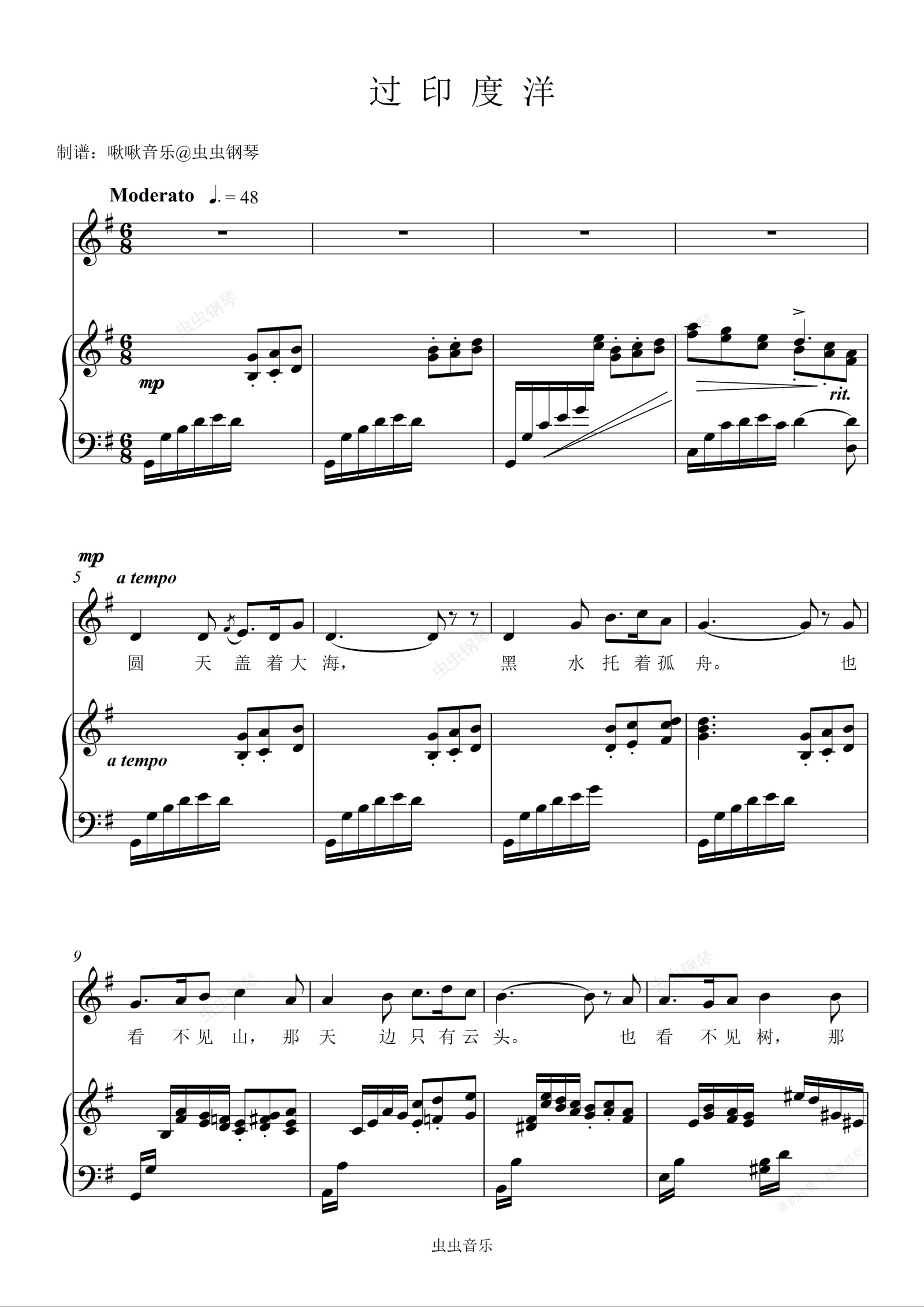 钢琴谱:过印度洋 钢琴弹唱伴奏谱 G调