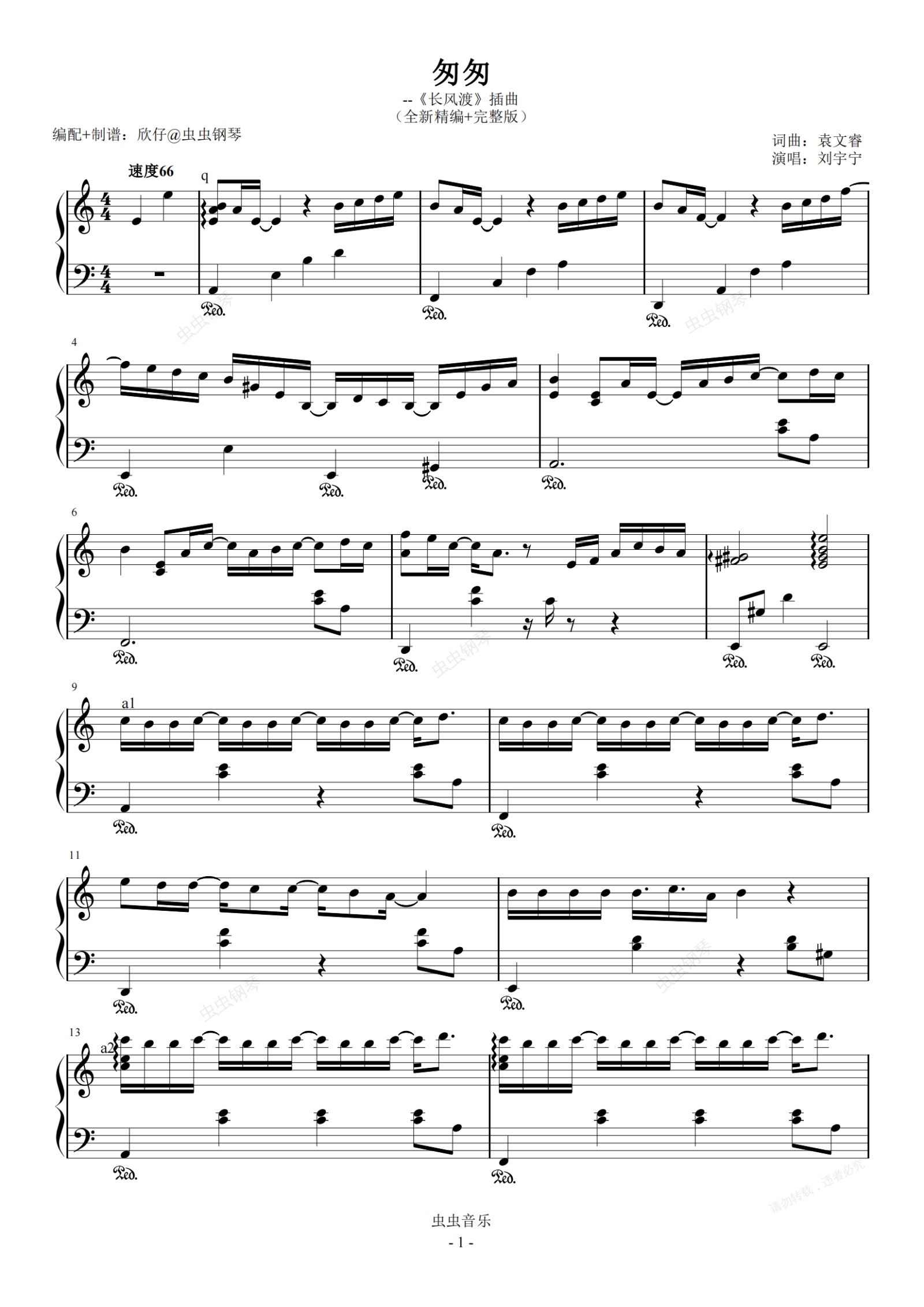 钢琴谱:刘宇宁-C《匆匆》(《长风渡》插曲、完整版)