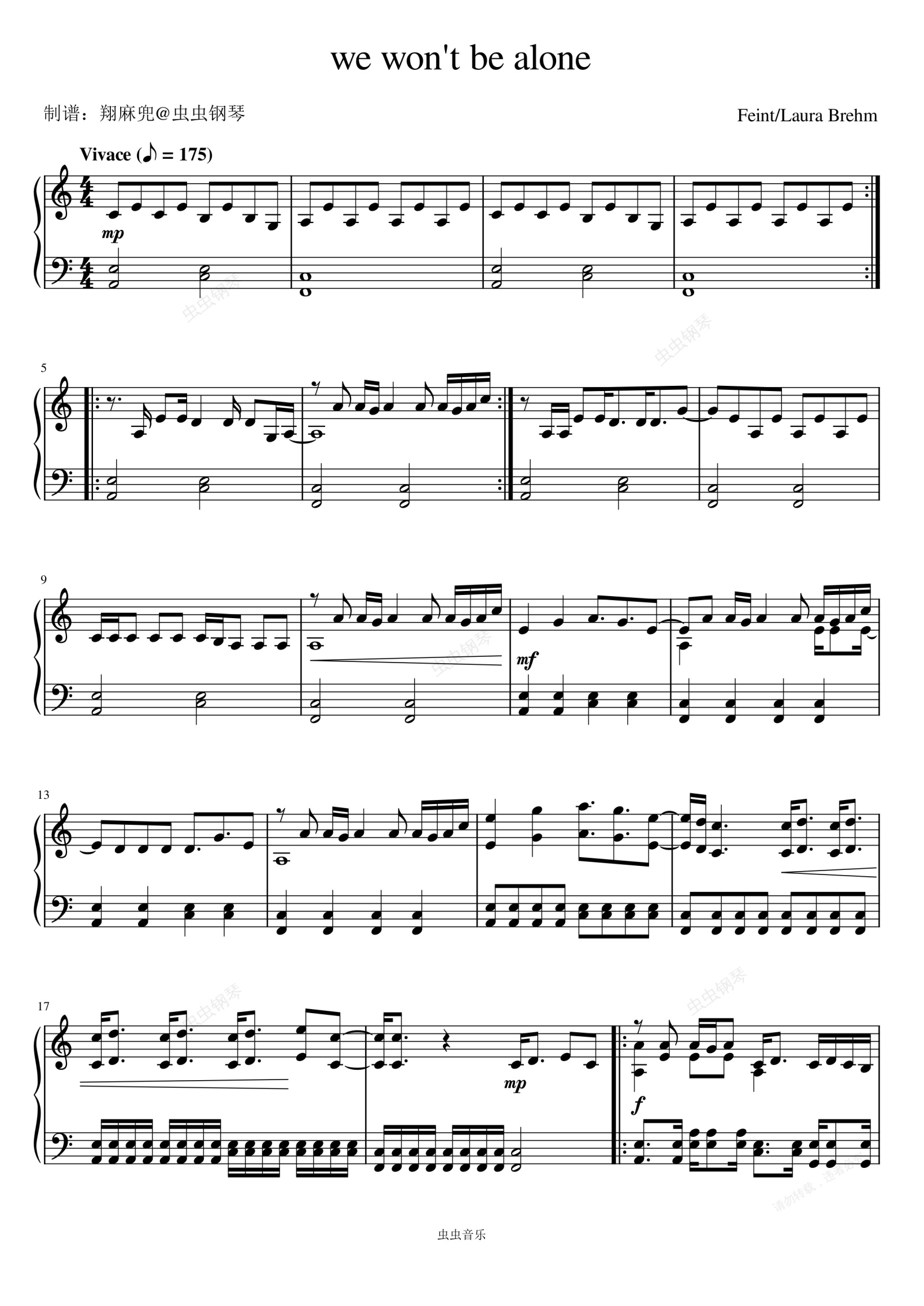 钢琴谱:We Won't Be Alone - Feint/Laura Brehm