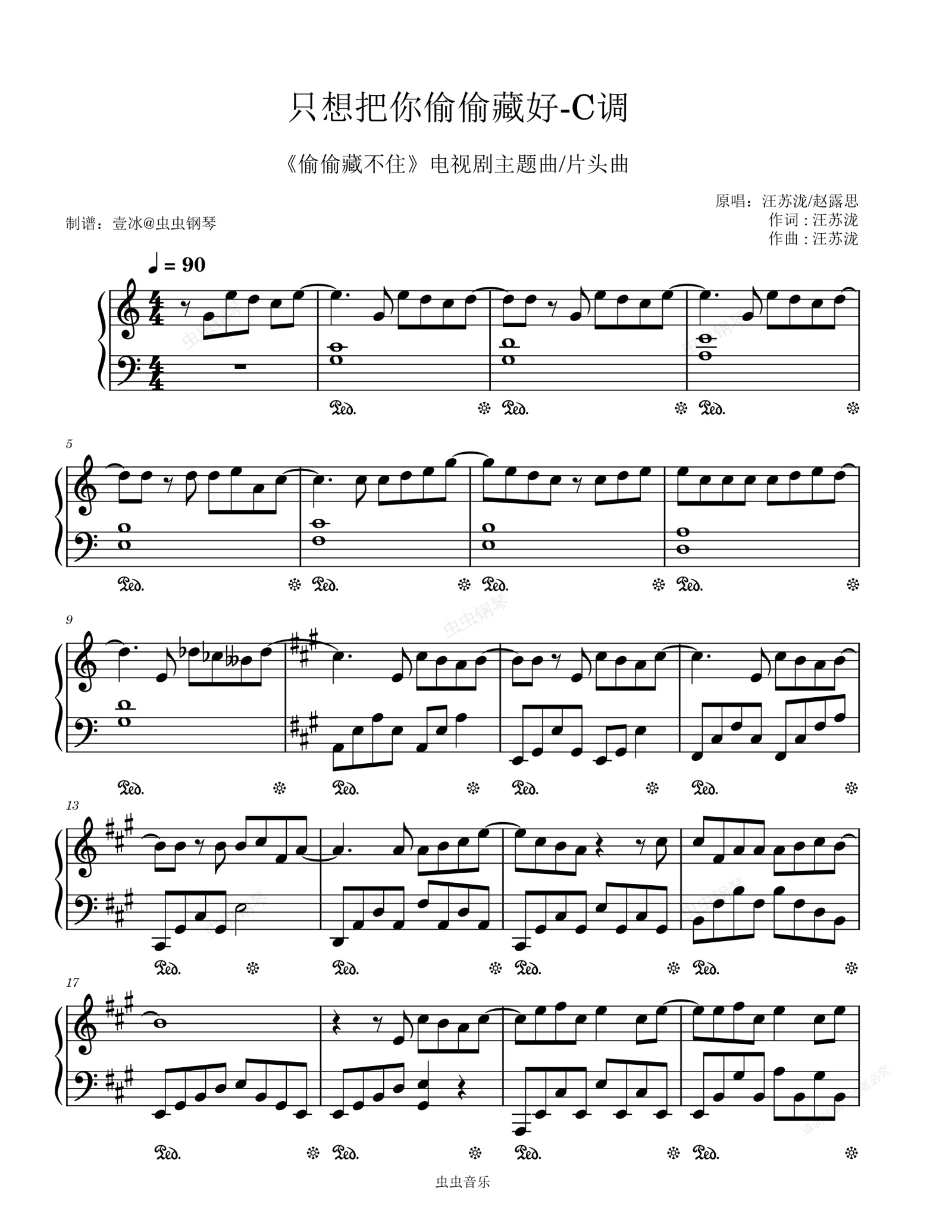钢琴谱:只想把你偷偷藏好//《偷偷藏不住》电视剧主题曲/片头曲-C调