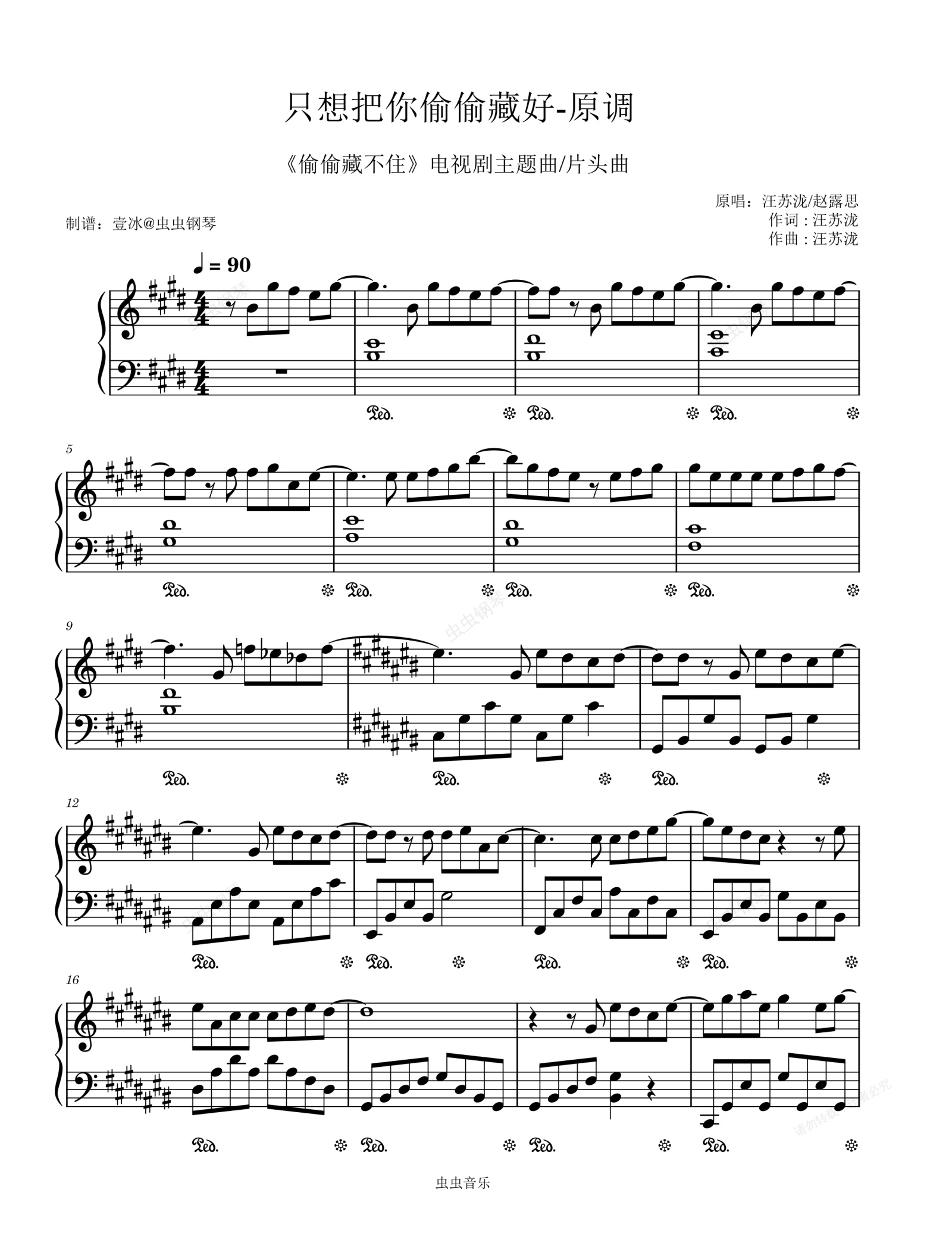 钢琴谱:只想把你偷偷藏好//《偷偷藏不住》电视剧主题曲/片头曲-原调