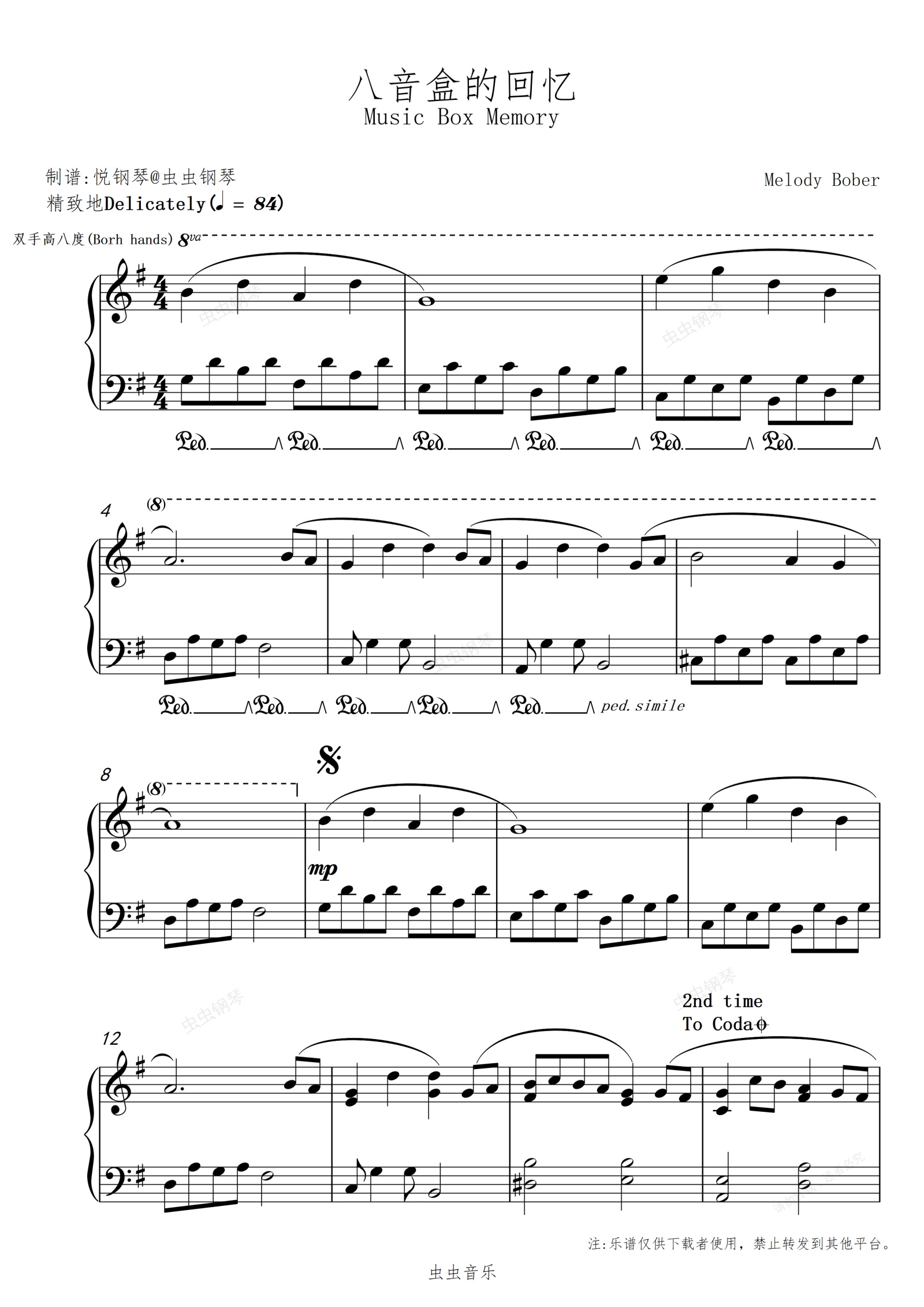 钢琴谱:八音盒的回忆//Music Box Memory【怀念-治愈】