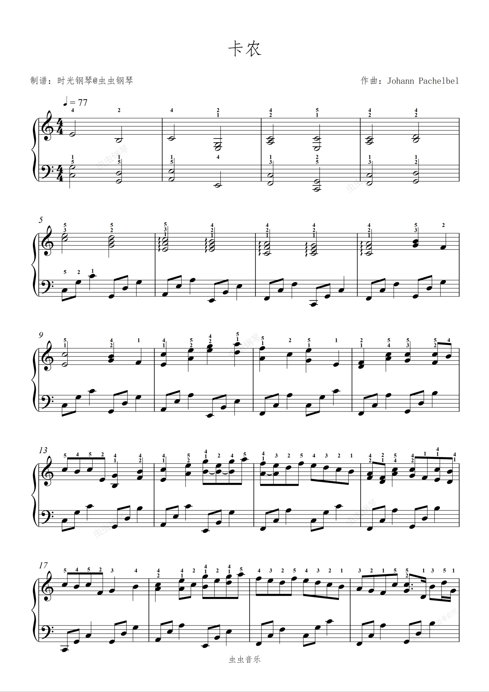钢琴谱:卡农 Canon in D Major Johann Pachelbel 简单好听