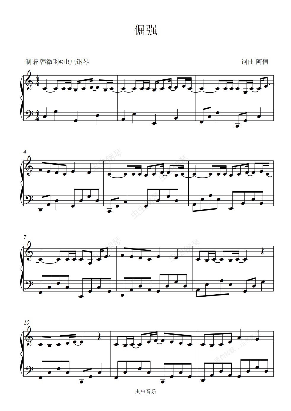 钢琴谱:倔强 五月天 C调 简易版