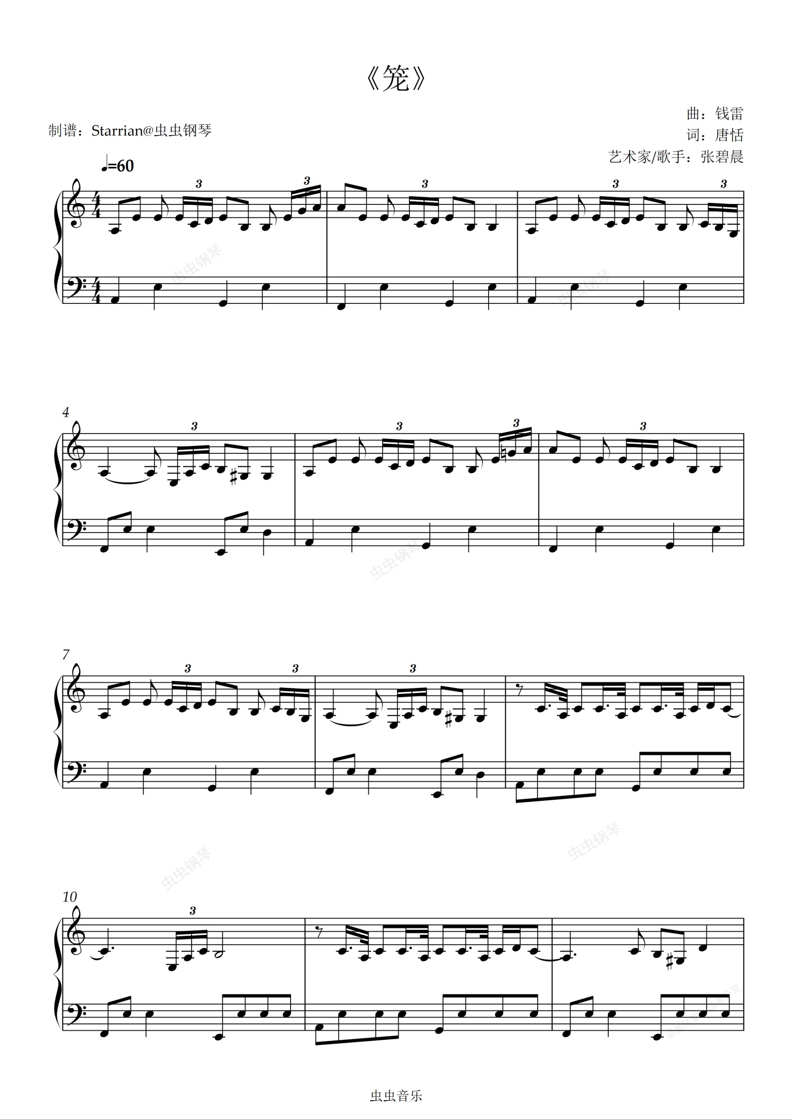 钢琴谱:张碧晨《笼》高燃精编原调完整版——《消失的她》片尾主题曲