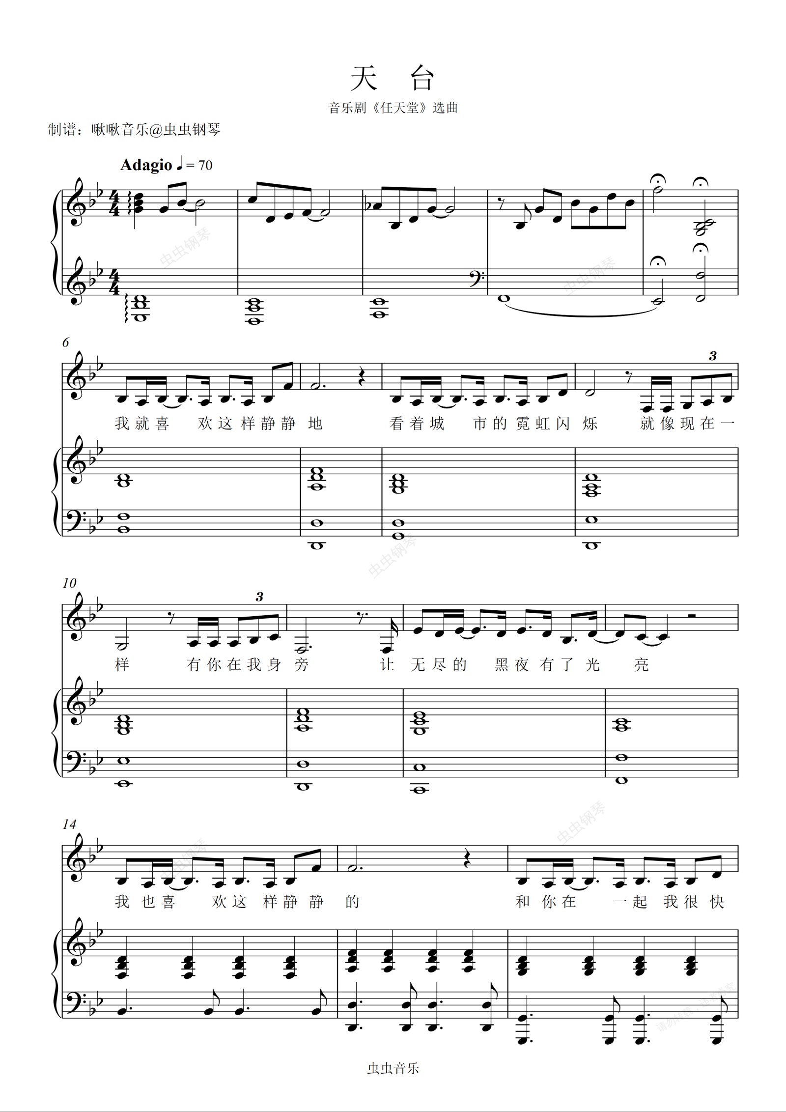 钢琴谱:《天台》音乐剧 任天堂 钢琴弹唱伴奏谱