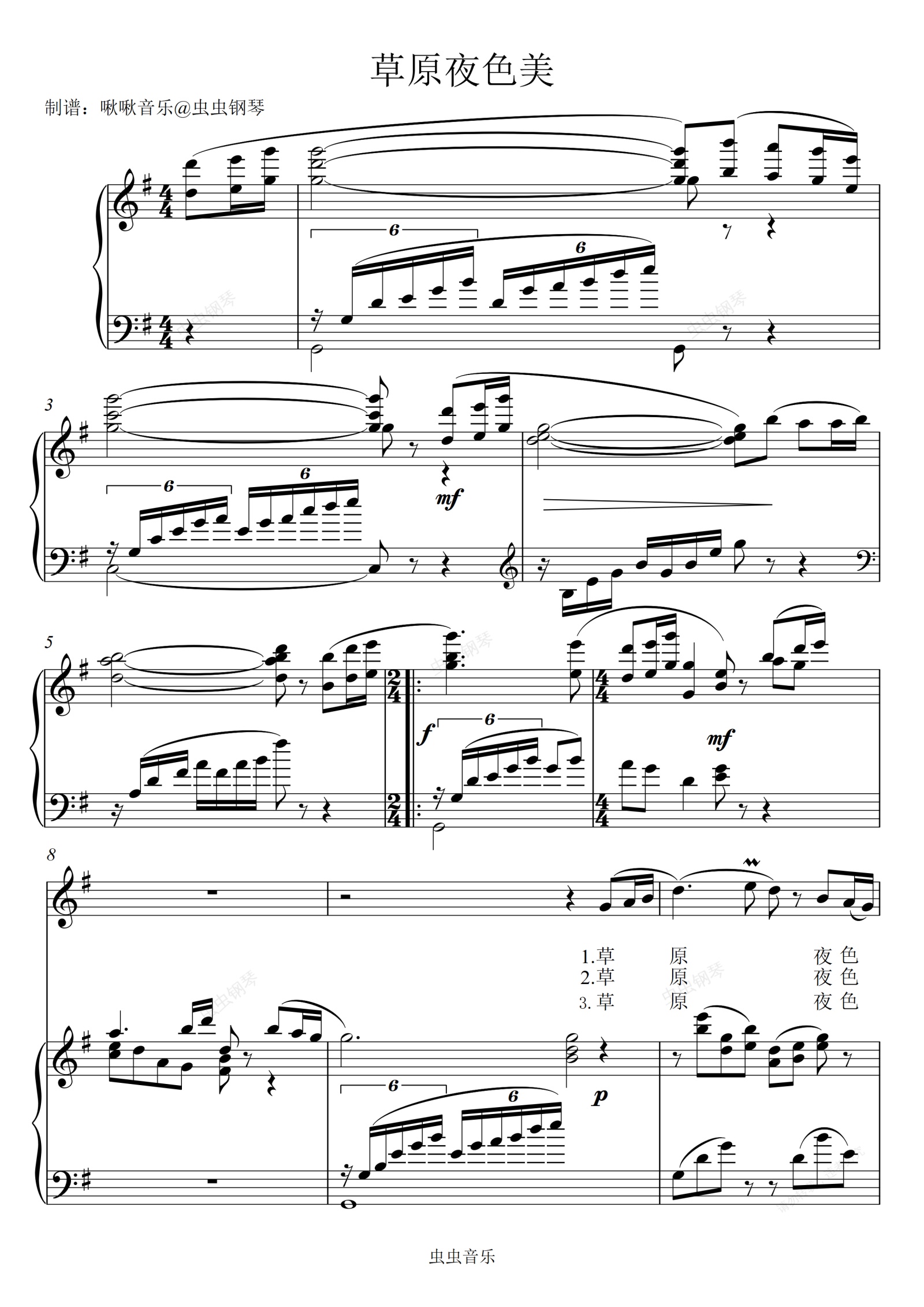 钢琴谱:草原夜色美 钢琴弹唱伴奏谱