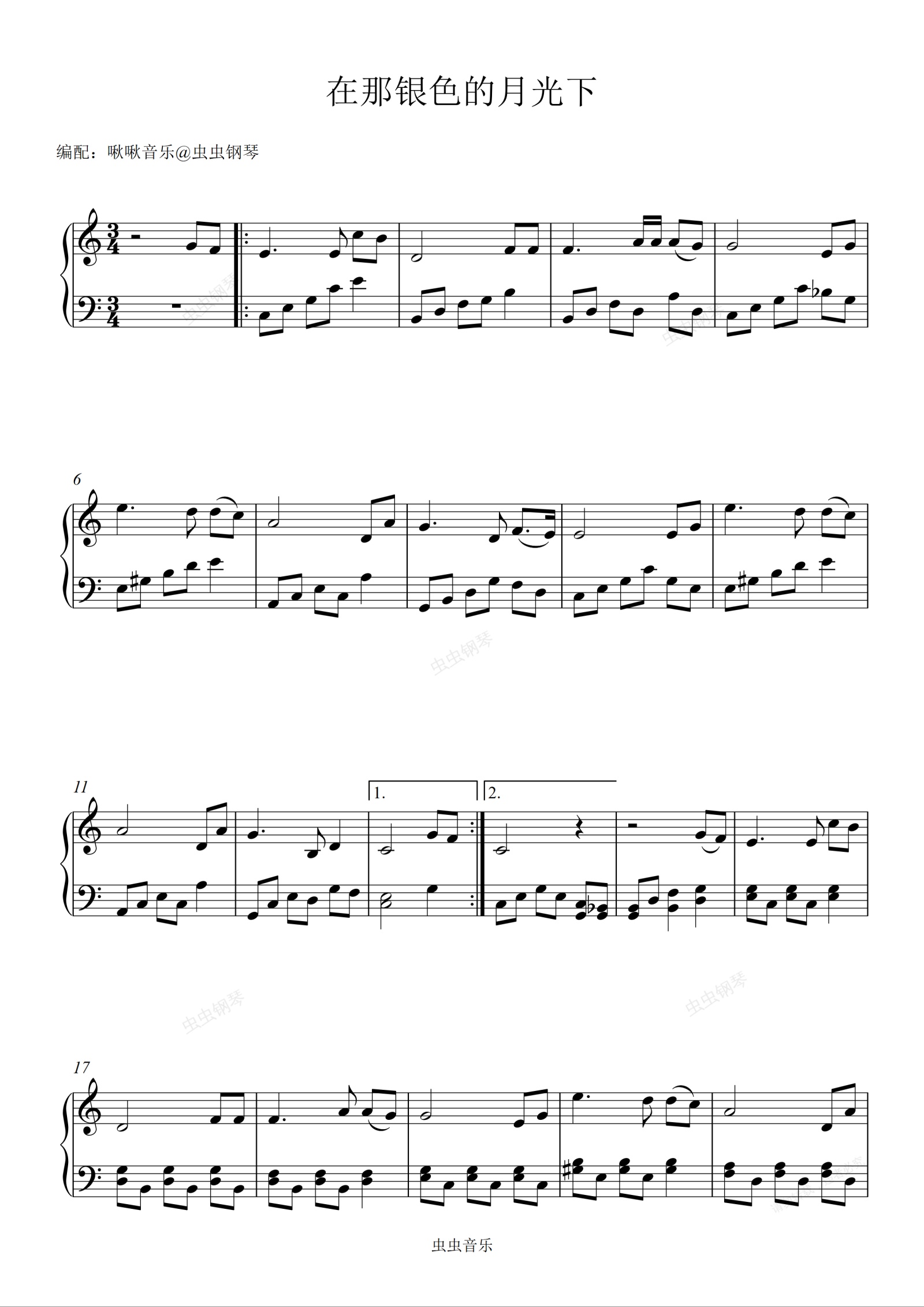 钢琴谱:在那银色的月光下 唯美 钢琴独奏谱