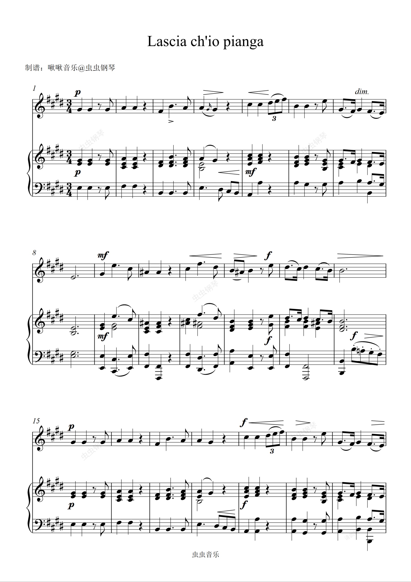 钢琴谱:《Lascia Ch'ioPianga》让我哭泣吧 钢琴弹唱伴奏谱