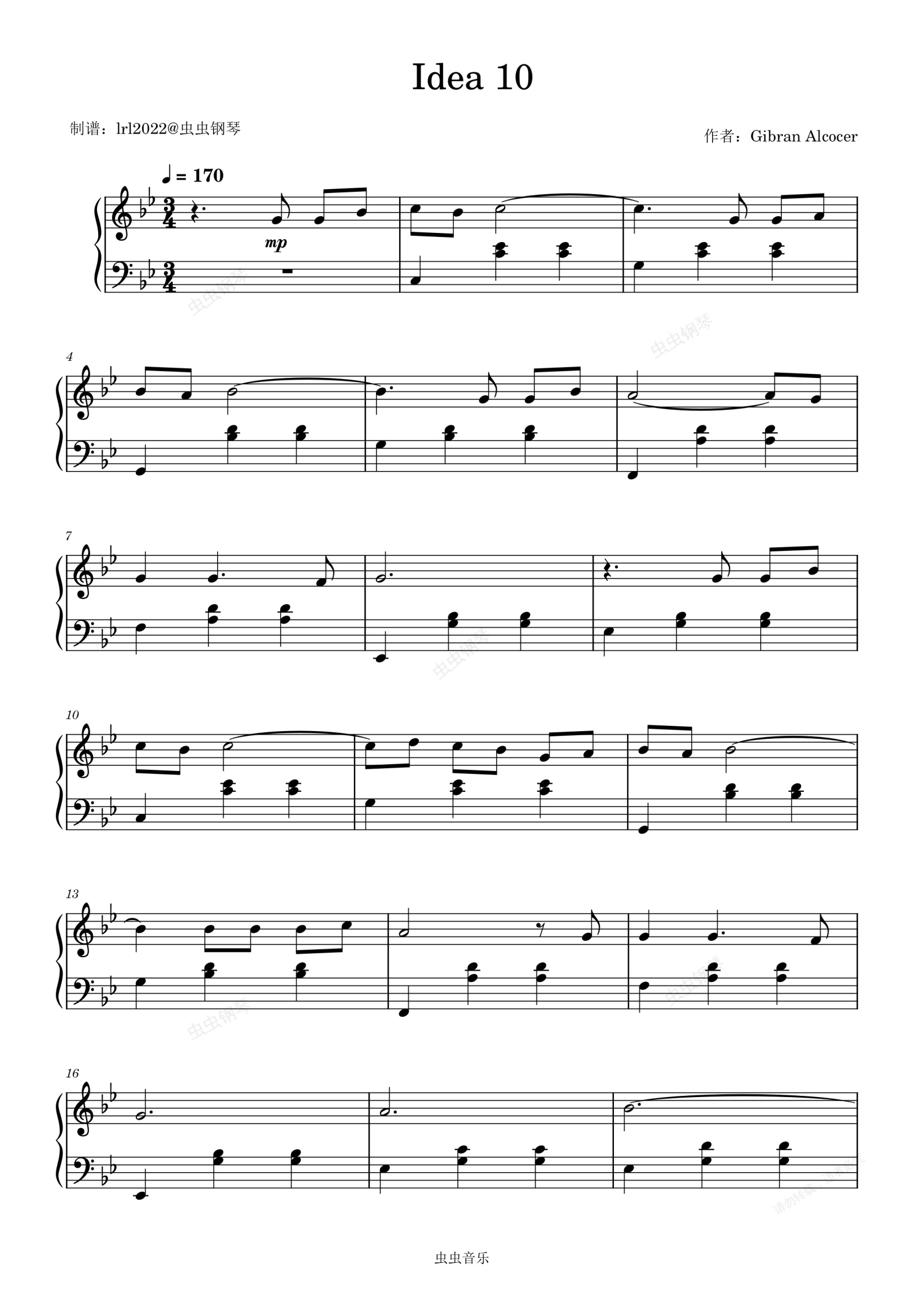 钢琴谱:Idea 10 – Gibran Alcocer - 钢琴独奏 - 简易版