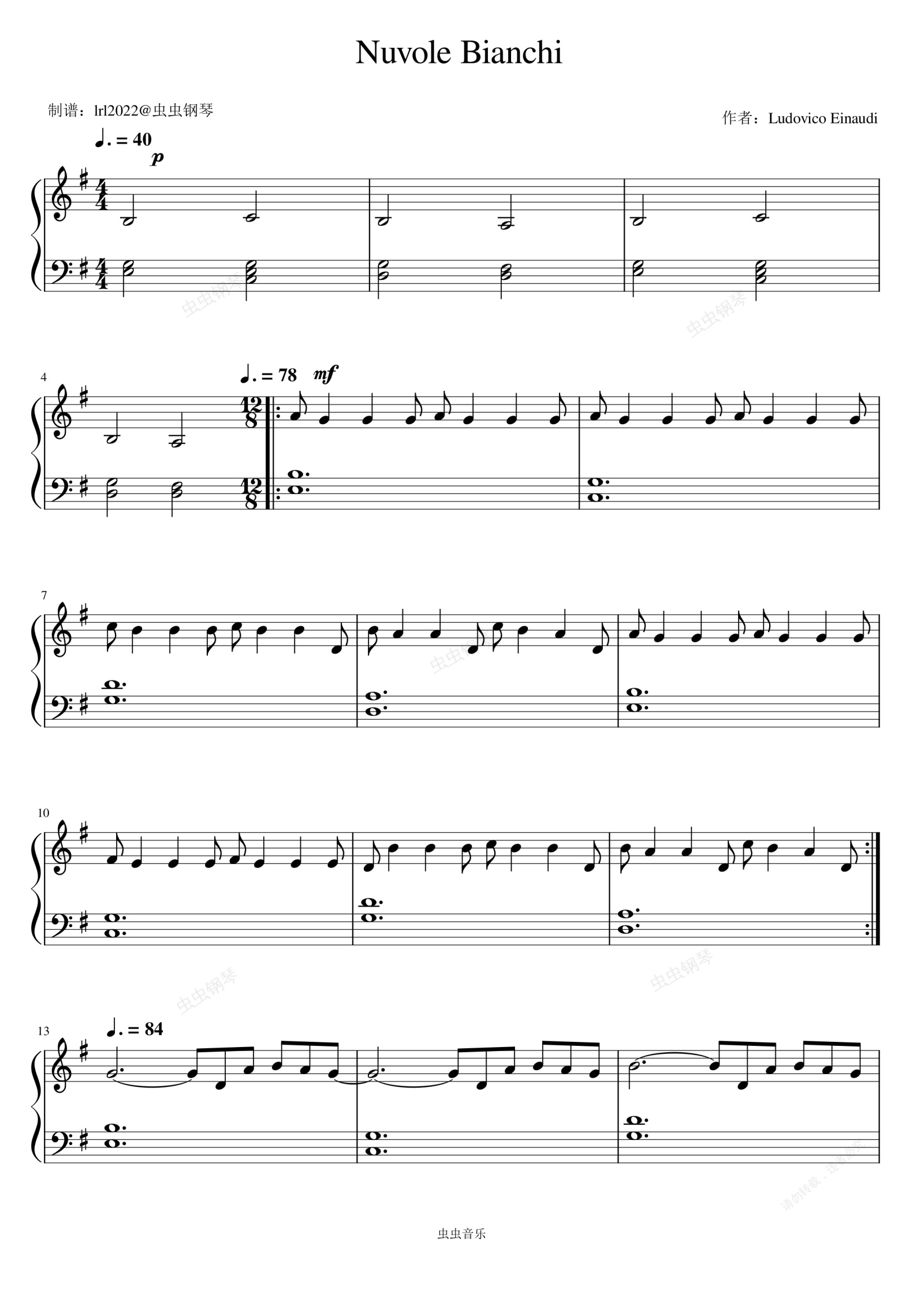 钢琴谱:Nuvole Bianchi - G调 - 钢琴独奏 - 初学版