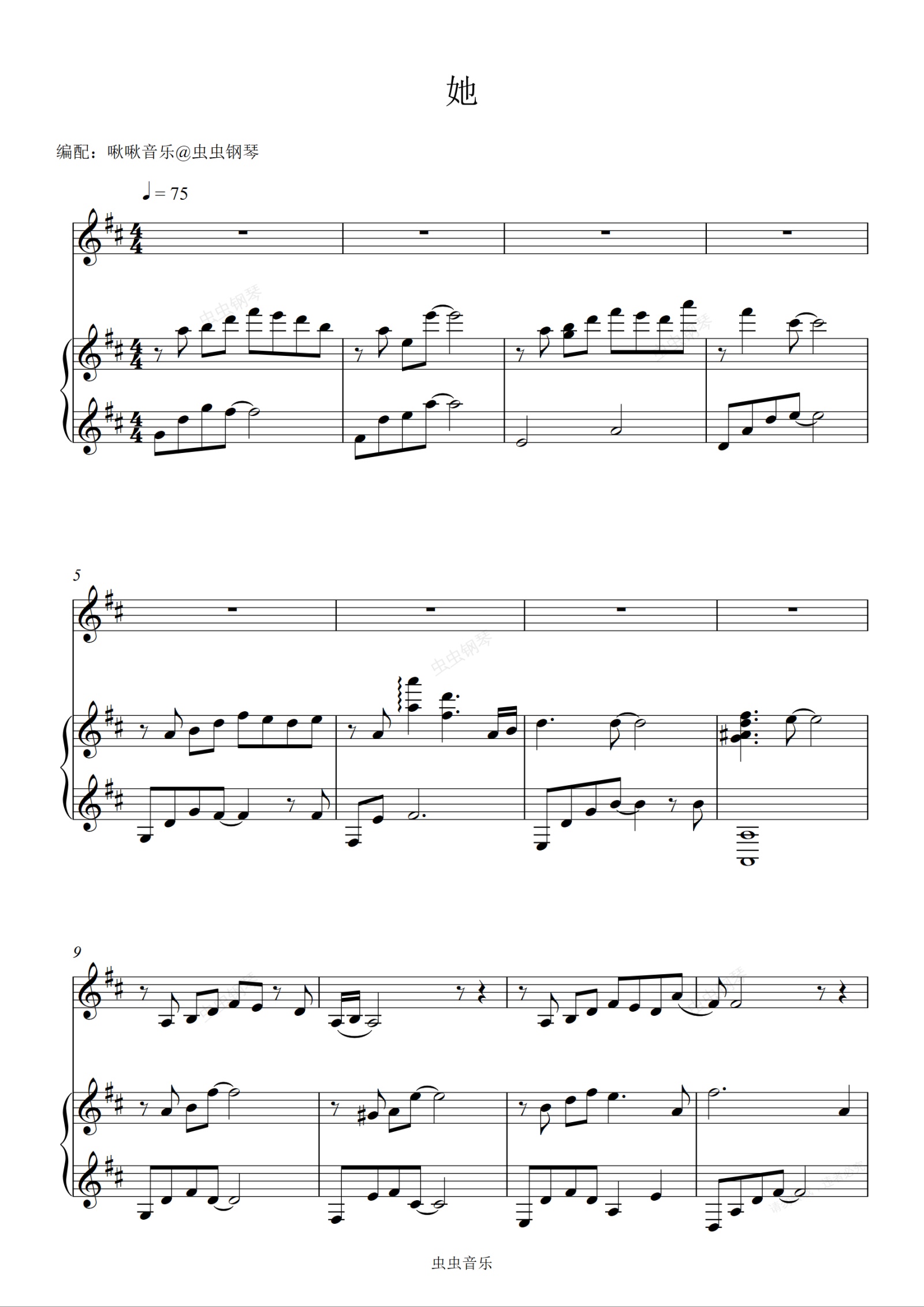 钢琴谱:《她》-李佳音 钢琴弹唱伴奏谱