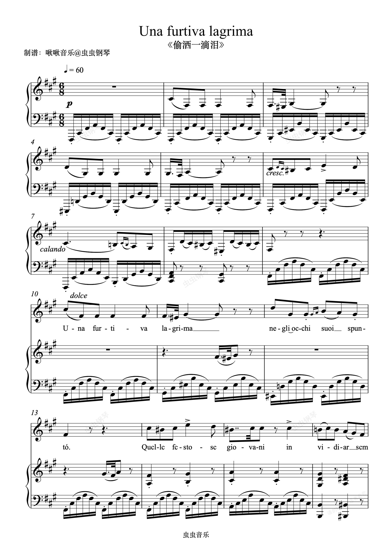 钢琴谱:《偷洒一滴泪》(UnaFurtiva Lagrima ) 钢琴弹唱伴奏谱