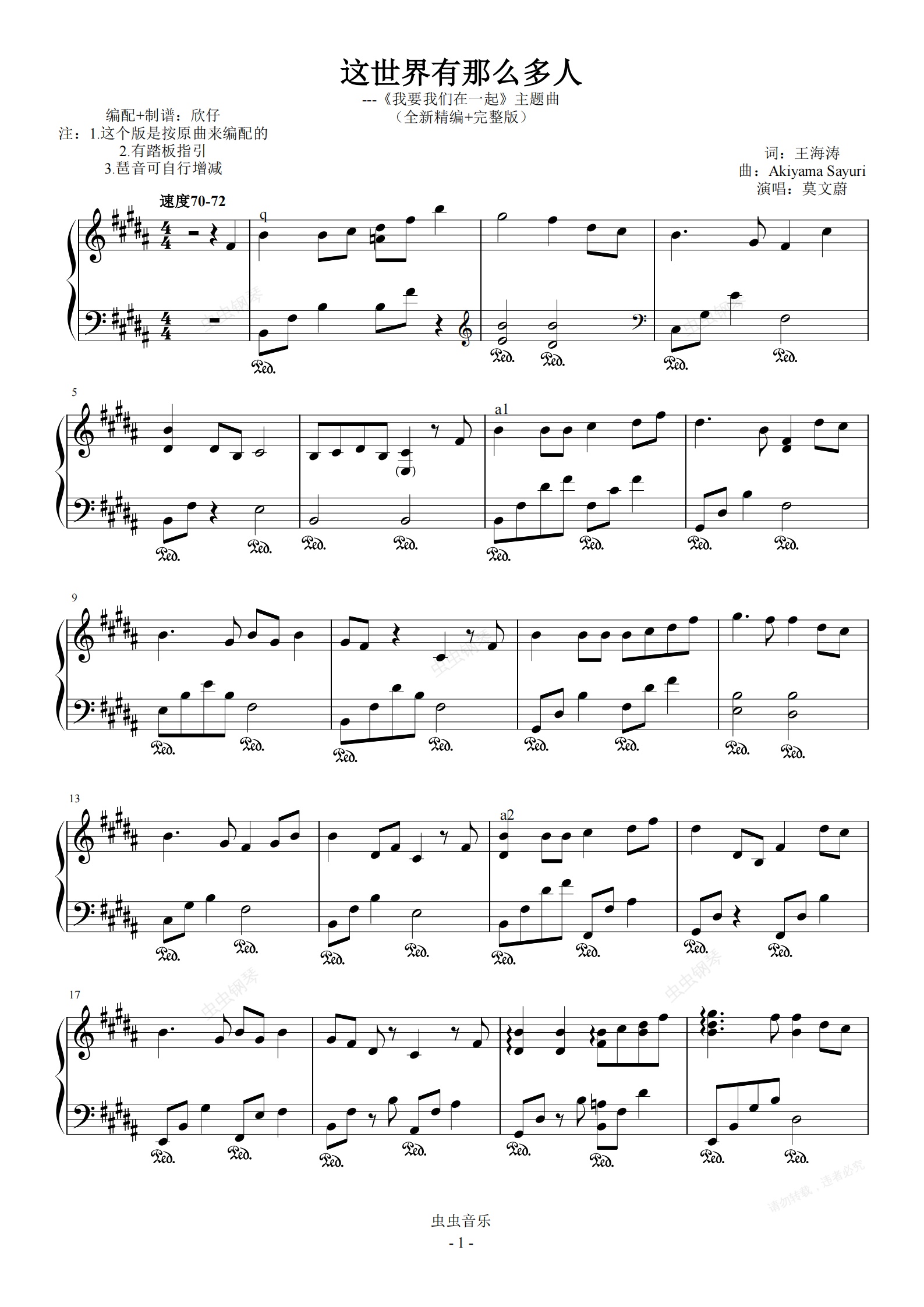 钢琴谱:莫文蔚-B《这世界有那么人》(全新精编+完整版)