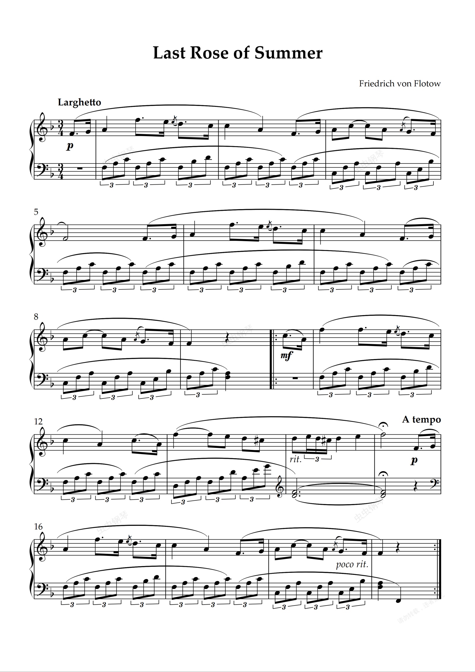 钢琴谱:Last Rose of Summer