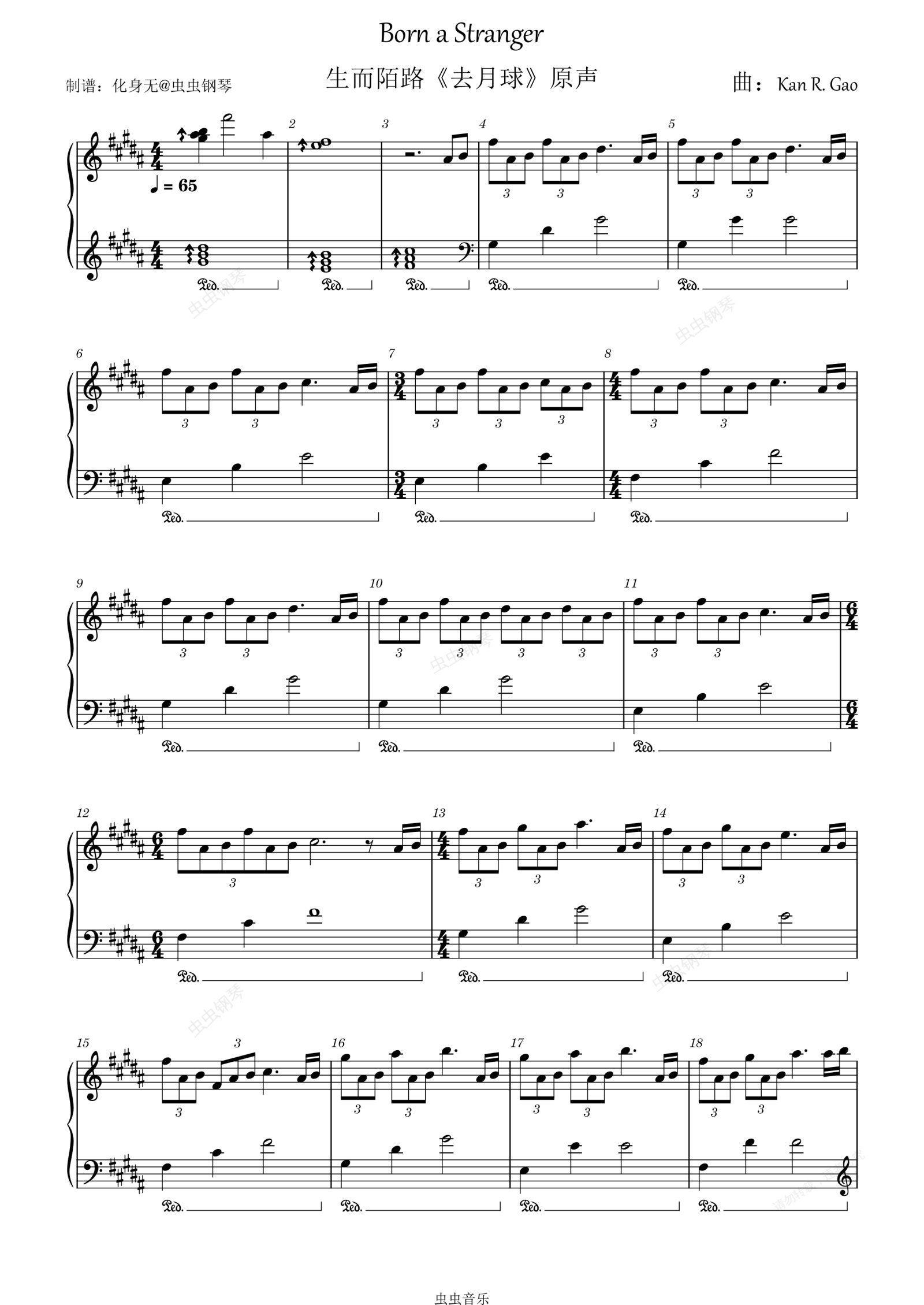 钢琴谱:Born a Stranger 原调独奏版 「去月球」To The Moon|