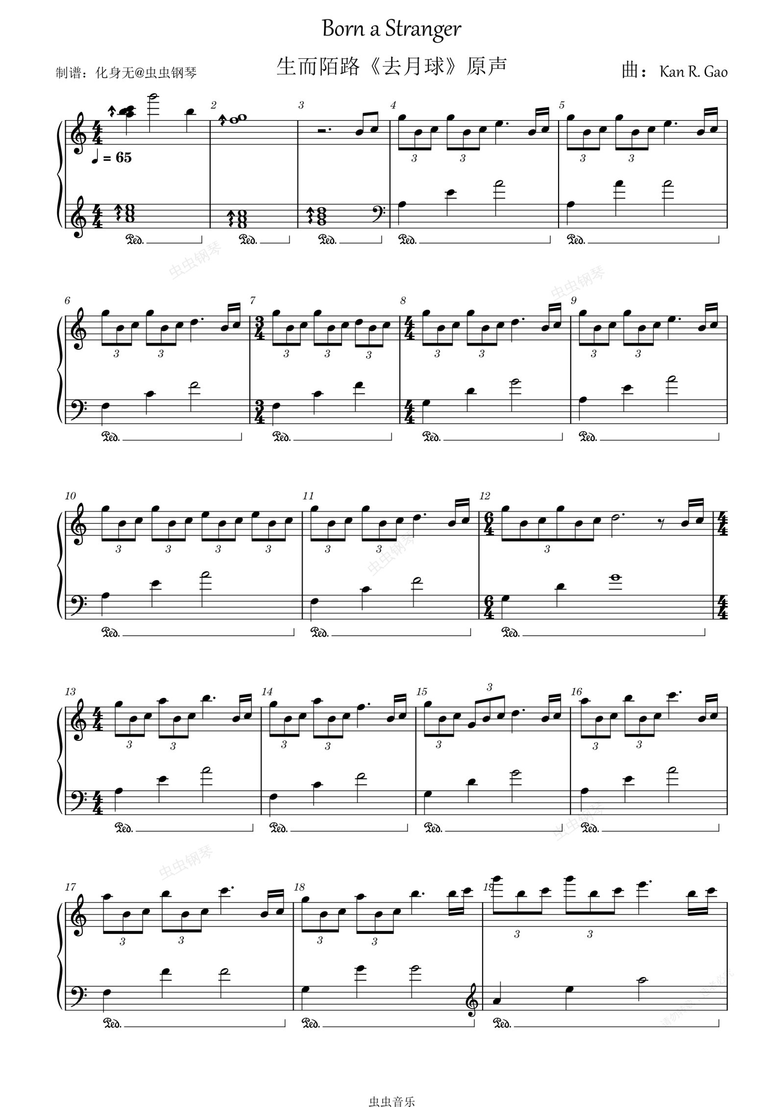 钢琴谱:Born a Stranger C调独奏版 「去月球」To The Moon|